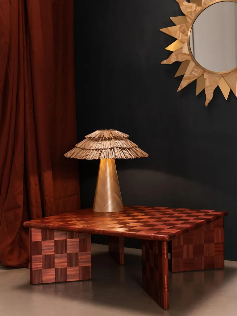 The BOS coffee table blends aesthetics and craftsmanship, going beyond functionality to inspire contemplation on the art of creation.The name "BOS" for this coffee table symbolizes the strength and enduring qualities of this piece, just as a bull represents power and resilience.Featuring straw marquetry, it celebrates the transformation of the ordinary into art, encouraging us to find beauty in unexpected places.In a world focused on disposability, the BOS table symbolizes sustainable living and prompts reflection on our environmental.Inlay scheme: WeaveColour scheme: RutaMATERIALS: MDF, painted rye straw, waxDIMENSIONS (cm): 100x100x40.Dimensions and colours are customizableWeight: 40 kgLead time: 9-10 weeks.