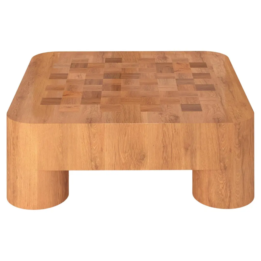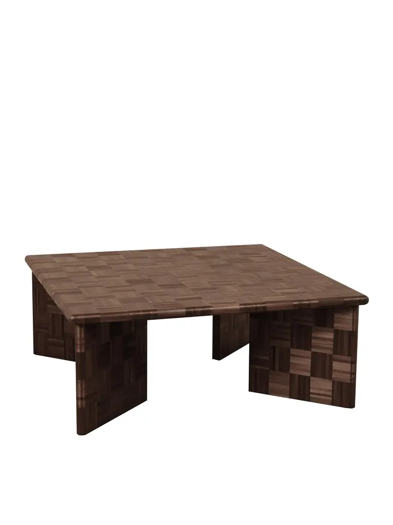 Bos Square Side Coffee Table Straw Marquetry Inlay Handcrafted Brown Weave