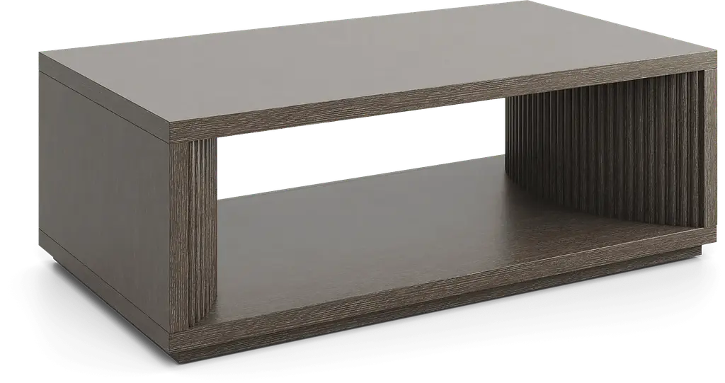 As the center of your conversation area, the Boxcar cocktail table lends authentic warmth and character. Its clean geometric lines are brought to life with the organic beauty of Black Stained Ash veneers formed in an artistic alternating pattern across the tabletop. Designed with an open storage area, this cocktail table’s timeless form is bolstered by thoughtful functionality—creating just the place to stow magazines or a favorite knitted throw.