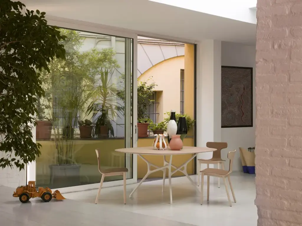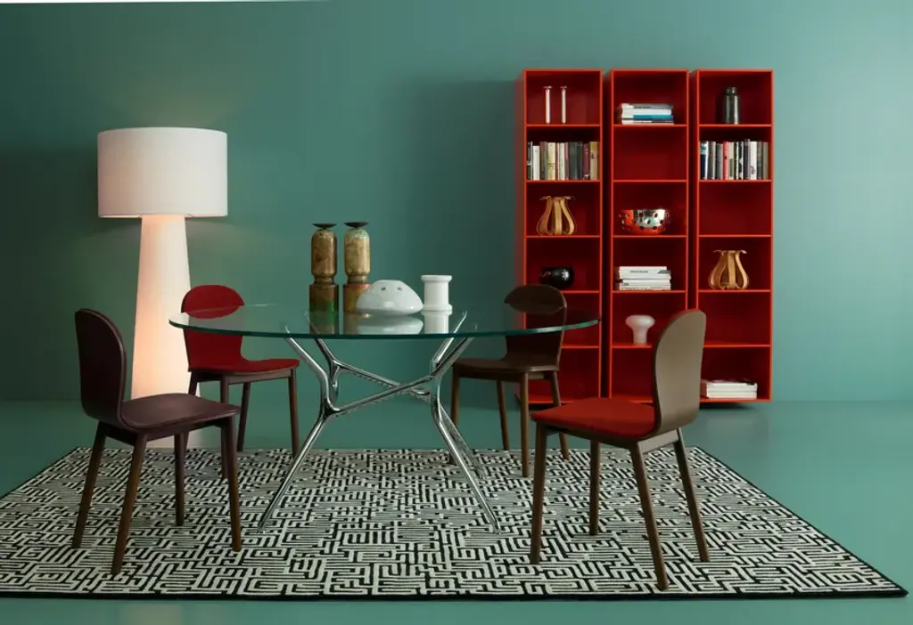 The structure of the Branch Table is composed of identical ramified elements made of die-cast aluminium: for this product, designer Jakob Wagner created a series of seamlessly interconnecting elements in continuous movement, resulting in a base that is simple, yet complex, and makes the table stable and lightweight. This single component can be repeated numerous times to create a family of tables of varying dimensions.Easy to assemble and suitable for both residential and contract settings, the Branch Table is compact during transport. The table top is available in several versions: extra-light glass; matte lacquered in the colours from the collection; wood (oak with a natural or wengé finish, black canaletto walnut). The base comes with a matte finish, in white, anthracite or mud. Top: medium-density wooden fibre conglomerate panels, glassTop finish: matt lacquer, matt lacquer extra, 133 natural oak, 150 wengé-stained oak, 186 Canaletto Walnut, 832 extralight glassBase: base made of intertwined modules in die-cast aluminiumBase finish: matt varnished, 01 white, 48 anthracite, 71 mud, 412 polish chromed aluminiumNoteUndertop of tops in natural oak have a white lacquered edgeUndertop of tops in wengé-stained oak and Canaletto walnut have a brown lacquered edge