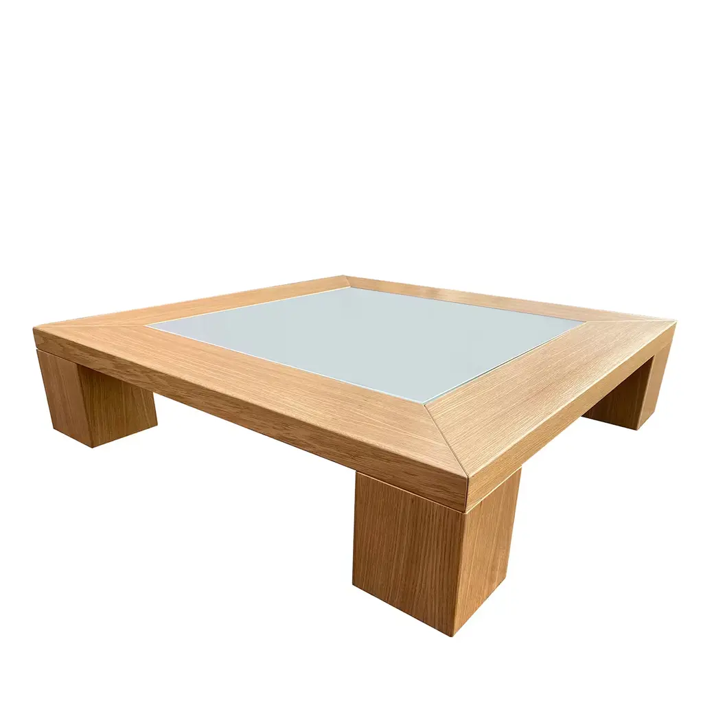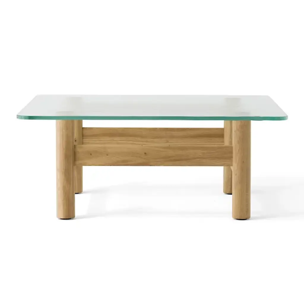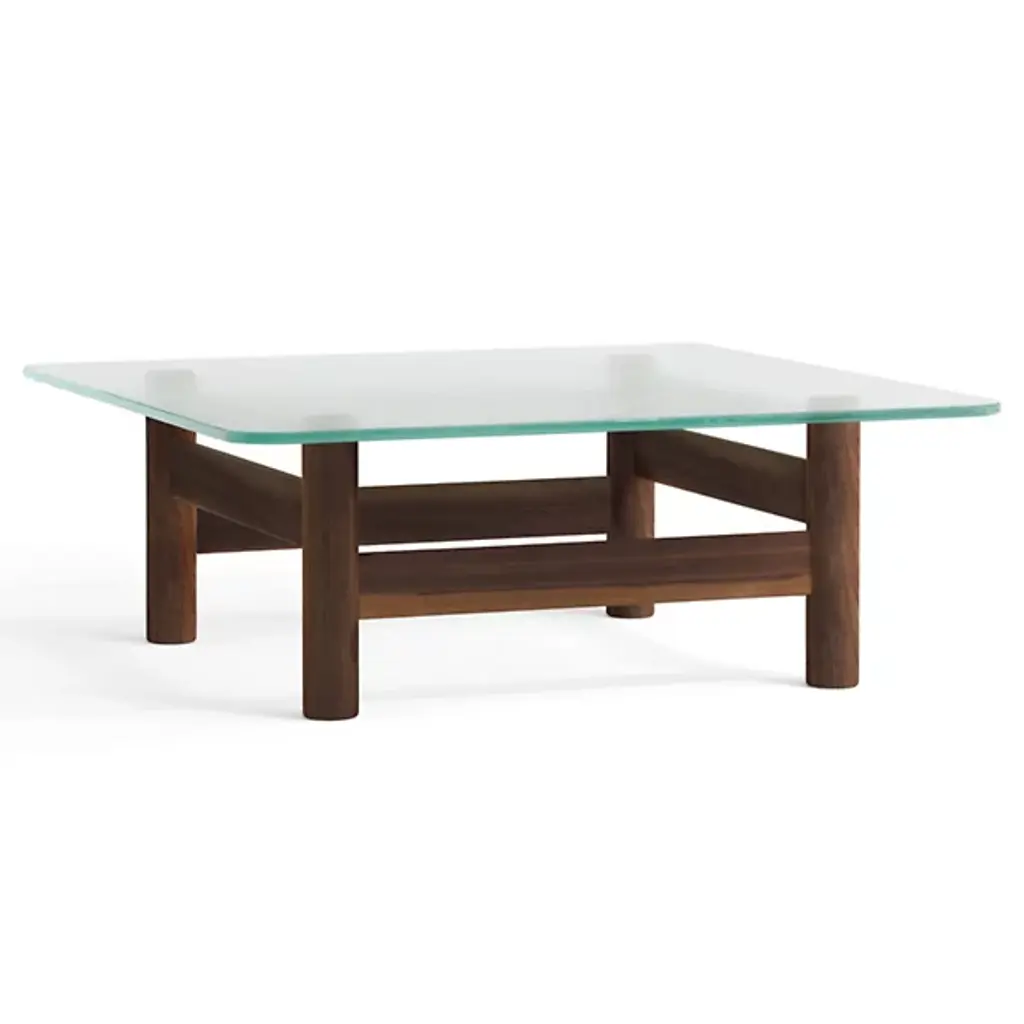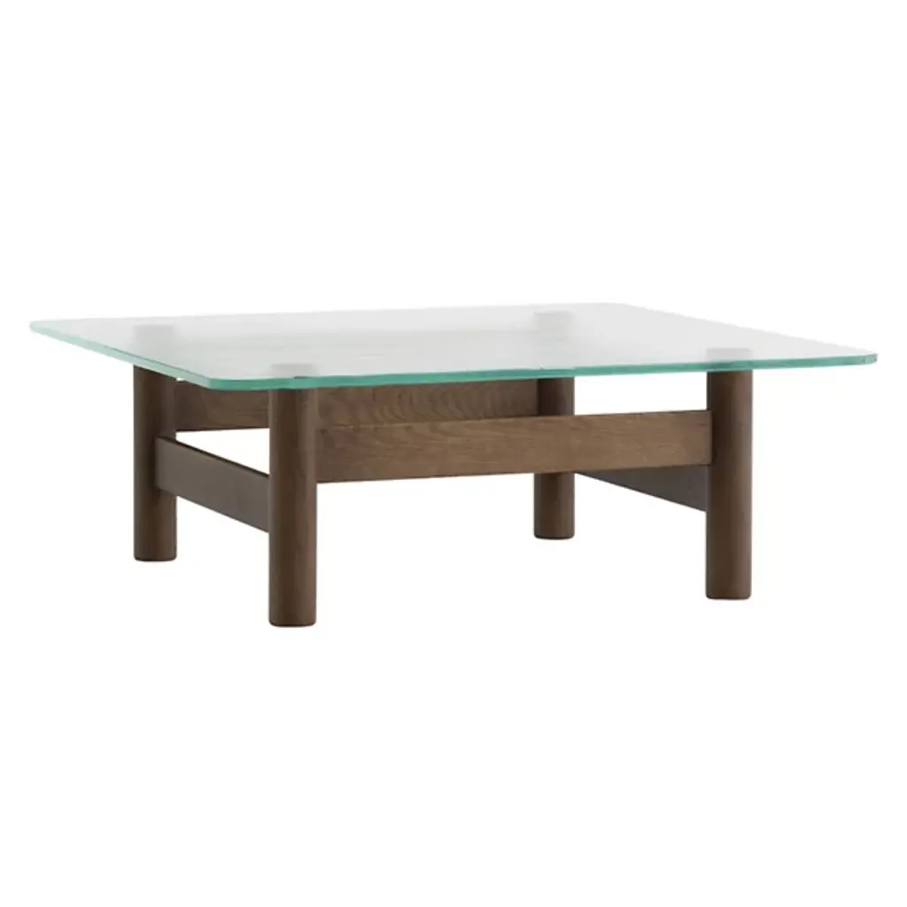 The Brasilia Lounge Table from Audo Copenhagen is an open, sculptural construction using simple shapes to elevate a thick, clear glass top. Designed by Anderssen & Voll, its solid oak wood construction is made in Slovenia, and features four cylindrical legs braced by vertical beams. The open design keeps the wood grain on display, contrasting the natural subtleties of the wood with the translucent glass top. A mix of mid-century Scandinavian design and Brazilian Modernism, its strong frame displays traditional wood joinery techniques with its smooth curves offering a soothing accompaniment to its surroundings.