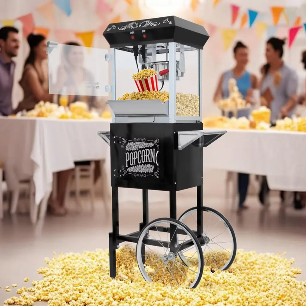 The Brentwood PC-488R Classic Striped 8-Cup Hot Air Popcorn Maker pops popcorn faster than a microwave. This popcorn machine produces up to 8 cups of popcorn in just 2-3 minutes. Hot air popcorn machine technology doesn't use any oil to keep it a healthy snack. Enjoy up to 4x the savings using loose kernels over microwavable bags of popcorn. Watch your popcorn pop right into your bowl. Mix it up and create all types of gourmet popcorn using the included recipes. Dual purpose lid and cover are removable for effortless clean up. When you're done wrap the power cord around the back of the popcorn popper for frustration free storage.