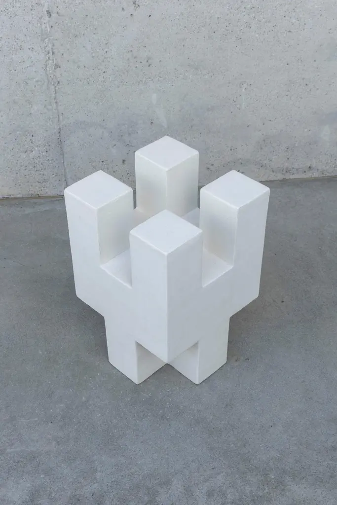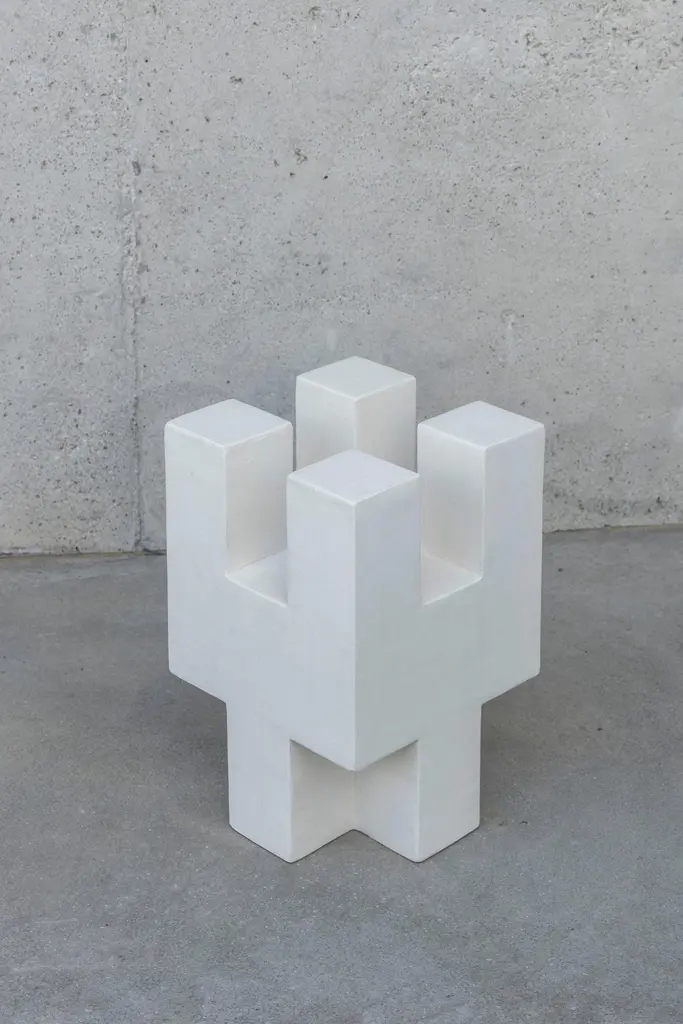 Brick Side Table 02 by Idaaf ArchitectsDimensions: D 30 x W 30 x H 45 cm.Materials: Wood and micro cement.‘Brick’ is the first attempt by Idaaf Architects workshop to create a new building material. White the process of selecting its textures is at the initial stage and the research process is ongoing, we used it's shape to create various decorative elements for the interior.Born and based in Tbilisi, Nana Zaalishvili completed her Master’s degree in civil architecture at Tbilisi State Academy of Arts. In 2016 she founded studio Idaaf Architects. Since its foundation, the studio has worked on multidisciplinary projects of different types and scale in Georgia and elsewhere. Alongside work on architectural and interior design projects, the sculptural furniture is an important part of the work of the studio. Nana'sapproach is shaped by Tbilisi's eclectic architecture and its hectic urban scene, as well as the stunning natural beauty of the Georgian vernacular architecture.Nana is author of the book: Soviet Bus Stops in Georgia and many architectural/design essays published in various magazines. Nana leads several researches about material studies and Georgian architecture. Information about her completed and ongoing projects can be found in her website.Idaaf Architects was established in Tbilisi in 2016 and is led by the architect Nana Zaalishvili. Studio works on multidisciplinary principles combining Architecture, Interior Design and Furniture, as well as Research and Material Studies. Each project is the results from the deep cultural, geographical and site research with the aim of creating timeless yet modern architecture and design in Georgia and abroad.