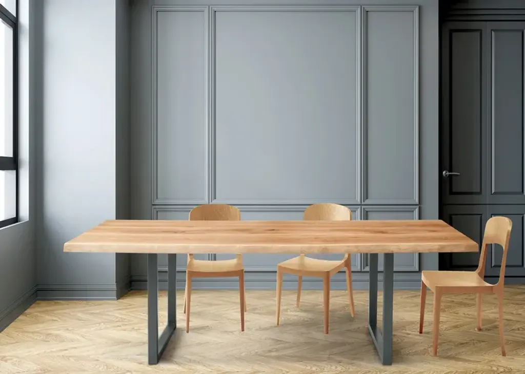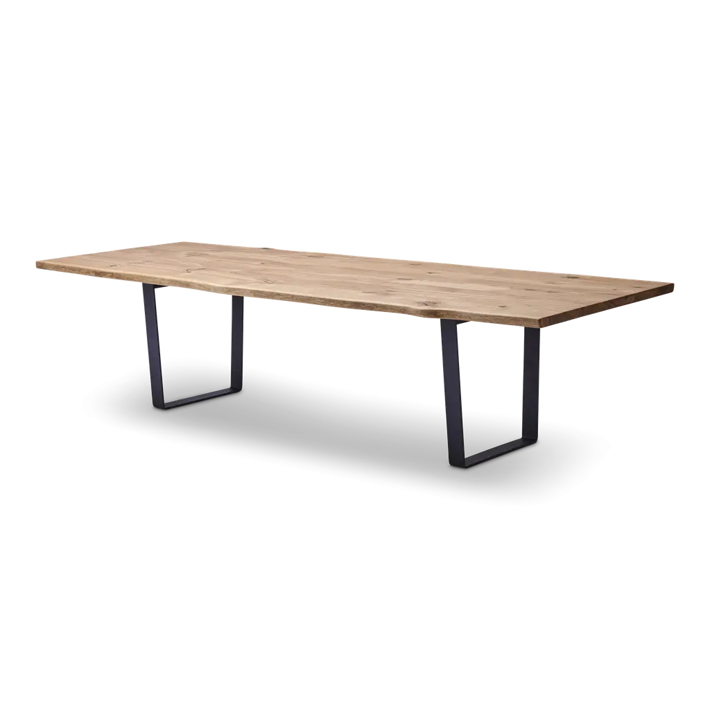 The BRIDGE table consists of a wood top and two steel legs varnished in dark grey.The table top is made in solid wood and is finished with transparent matt oil.The two legs are hand welded.Other sizes upon request