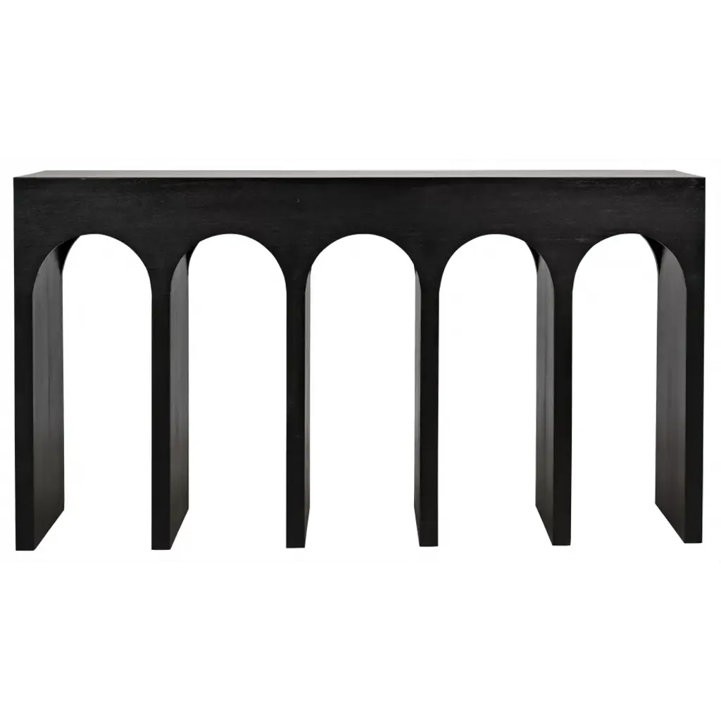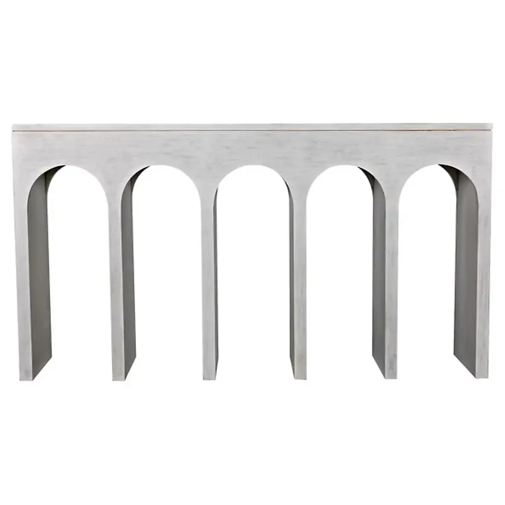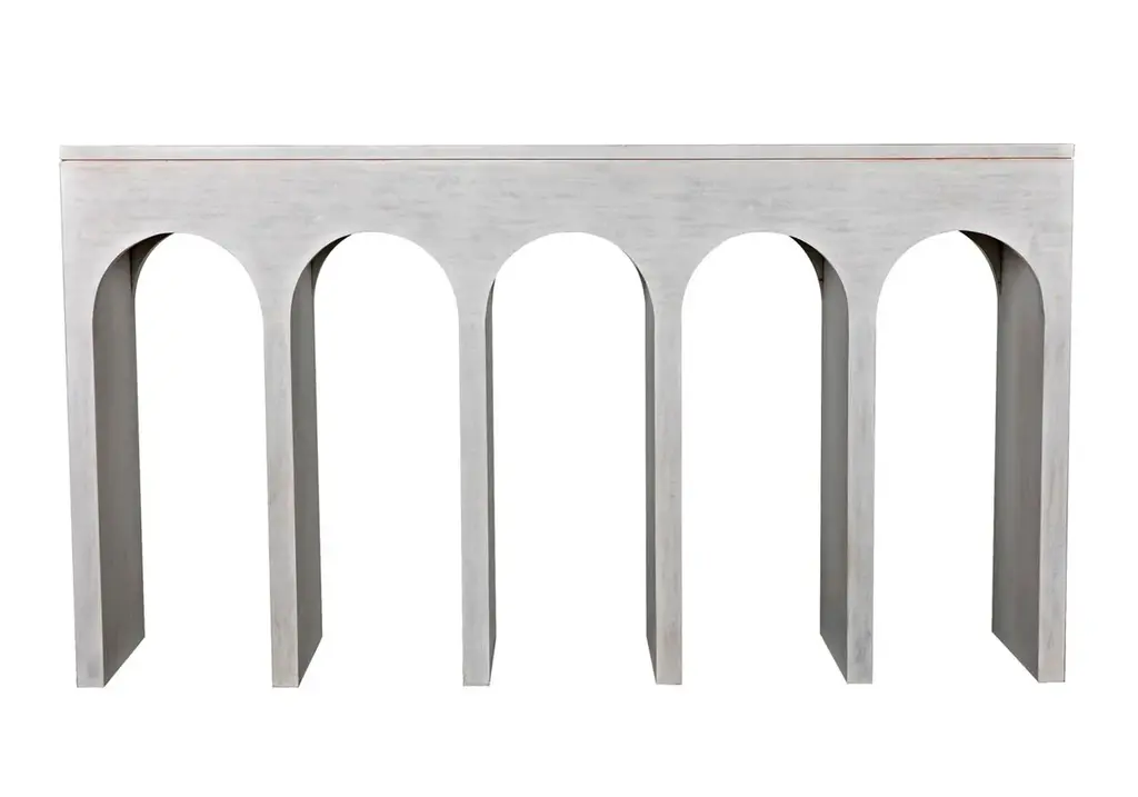 The Bridge Console Table from Noir draws its design inspiration from the elegant structure of suspension bridges. It features graceful arches that add architectural interest without overpowering the space. Crafted from rich mahogany, the console's hand-applied whitewash finish enhances the natural beauty of the wood, highlighting its grain and texture. The sleek yet intricate design perfectly balances form and function, making it a sophisticated addition to any entryway, living room, or hallway.