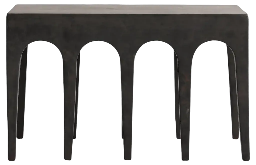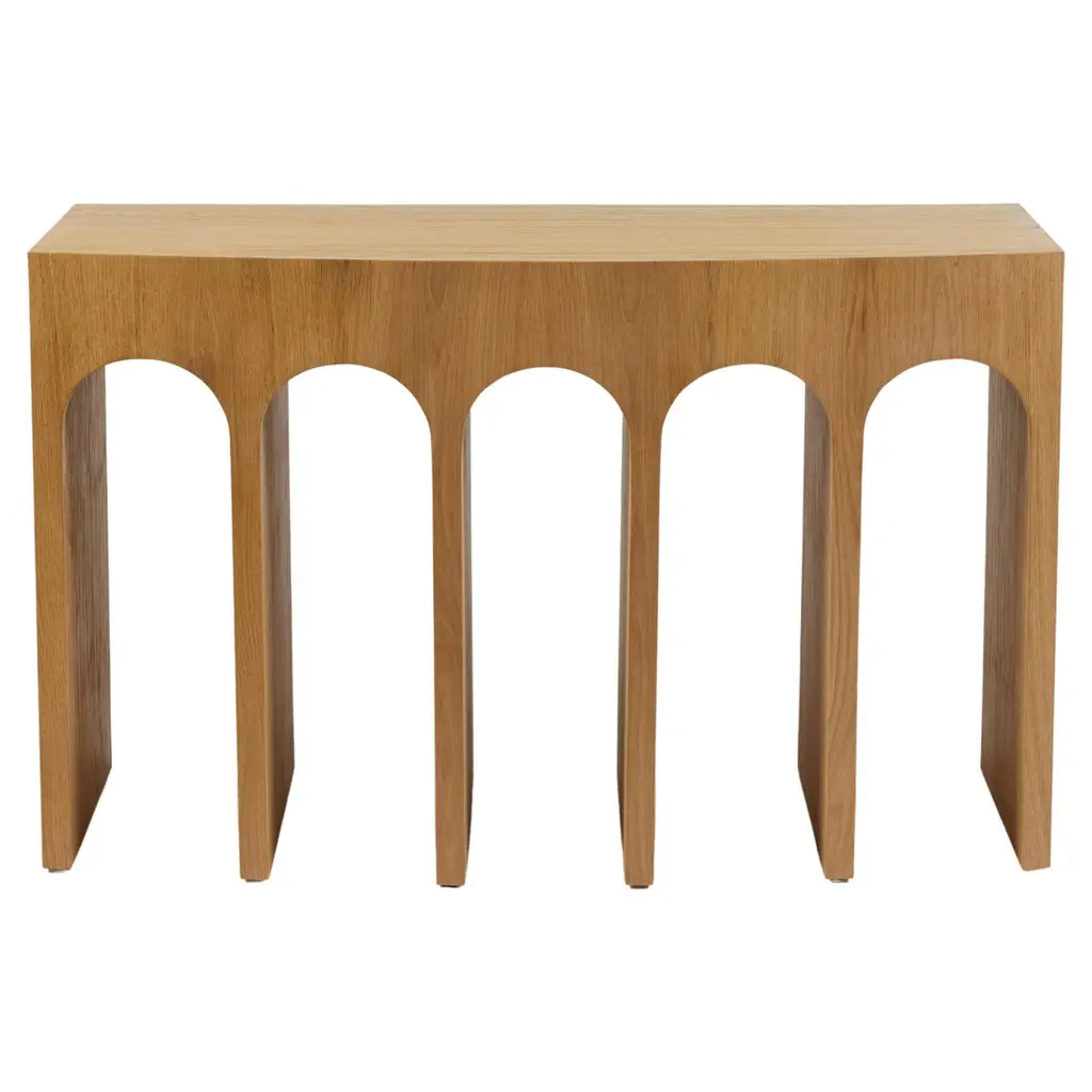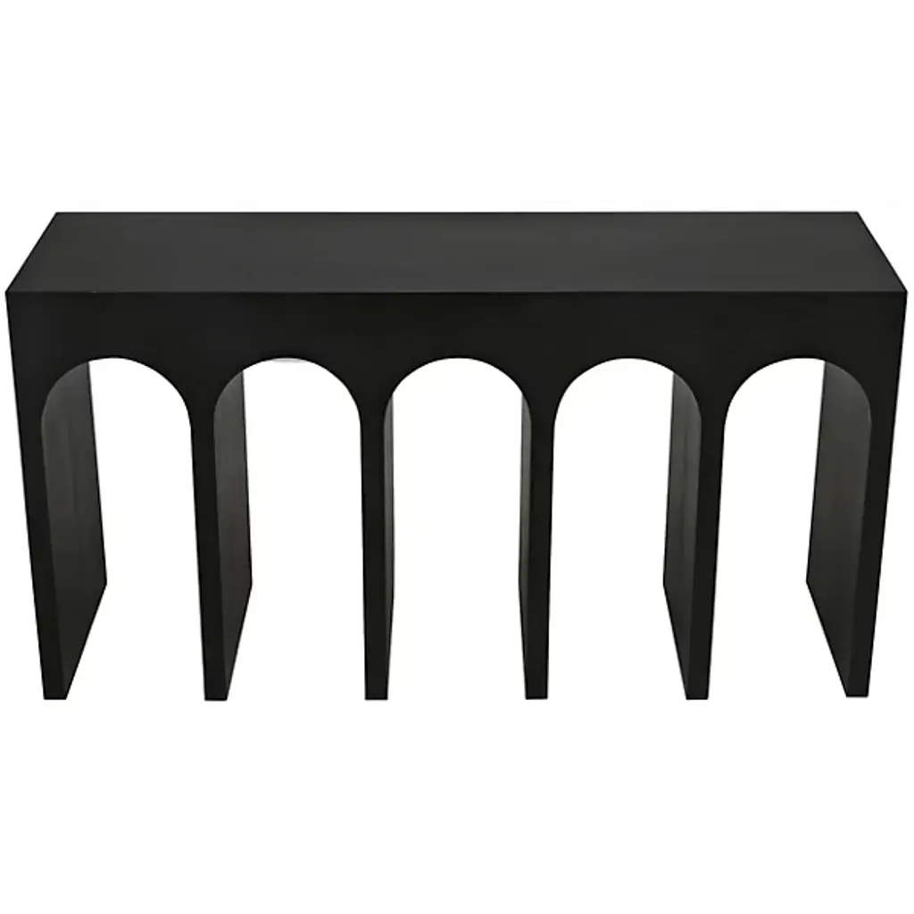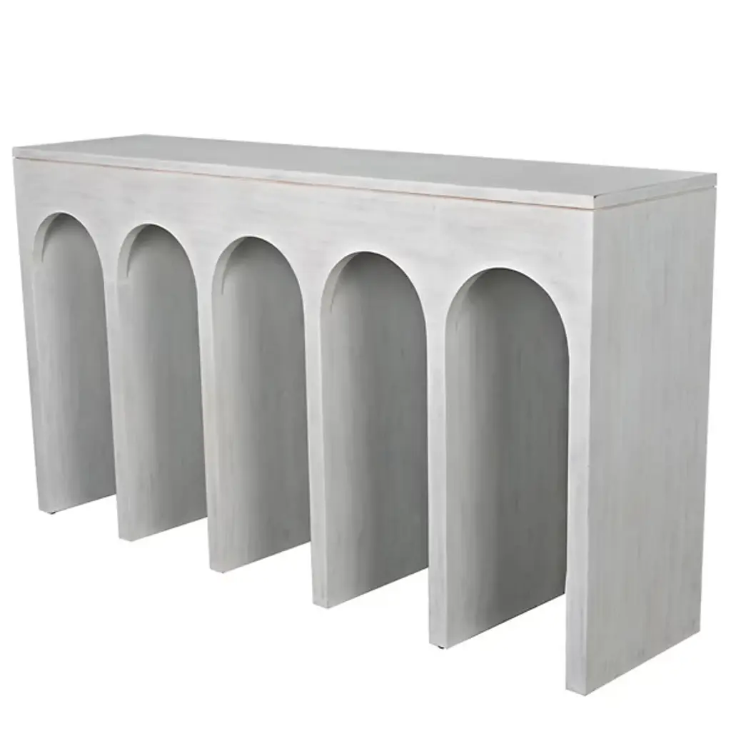 The Bridge Console Table from Noir draws its design inspiration from the elegant structure of suspension bridges. It features graceful arches that add architectural interest without overpowering the space. Crafted from rich mahogany, the console's hand-applied whitewash finish enhances the natural beauty of the wood, highlighting its grain and texture. The sleek yet intricate design perfectly balances form and function, making it a sophisticated addition to any entryway, living room, or hallway.