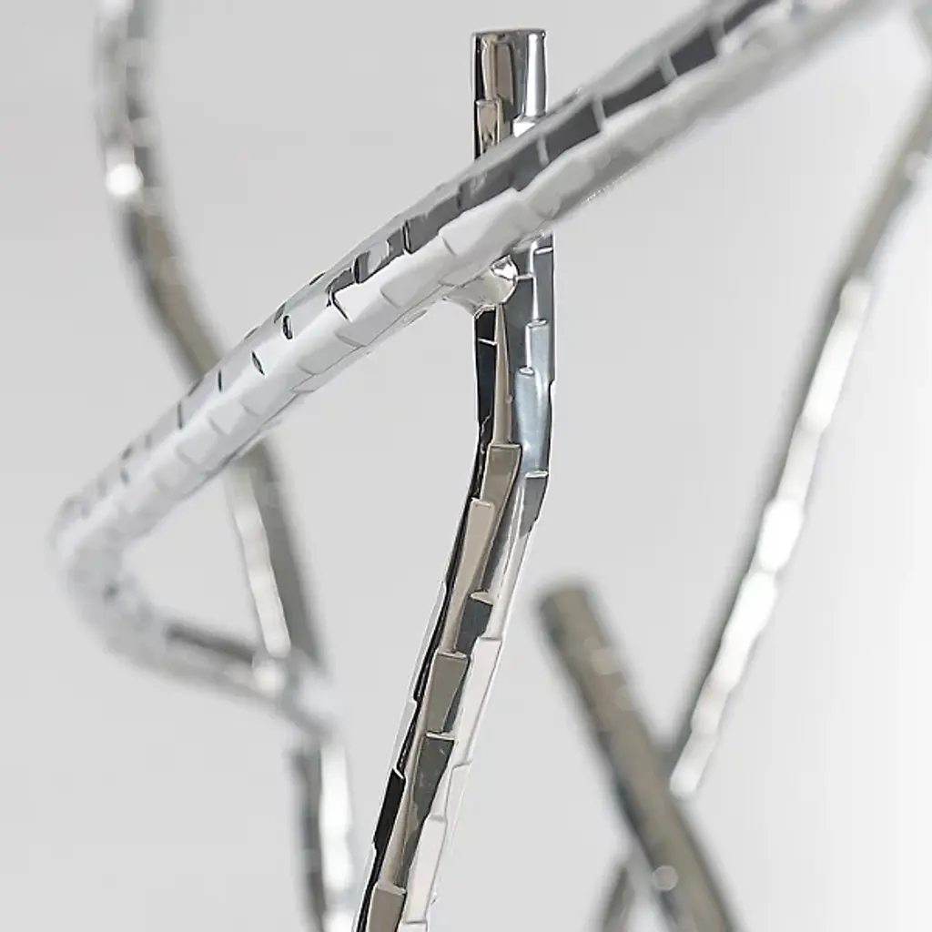 Graceful, sculptural, organic. Present key decorative objects atop the dramatic, handcrafted branch composition of the Brindille Console Table from Hubbardton Forge. Complementing the rounded front, the table top features a sharp-edged back to sit flush against a sofa, wall, or bed frame. The tabletop’s clear construction gives objects placed on top an eye-catching floating effect. Aluminum branches below also move the eyes through their sharp angle changes and hand-hammered organic texture. The console’s minimalist pairing of aluminum and glass complements both understated and décor-rich spaces.