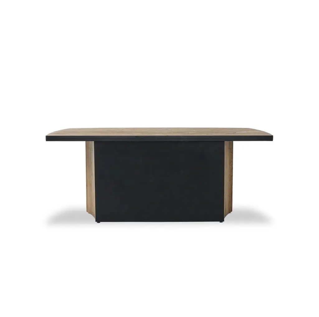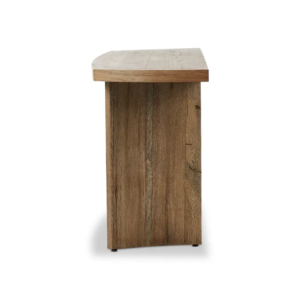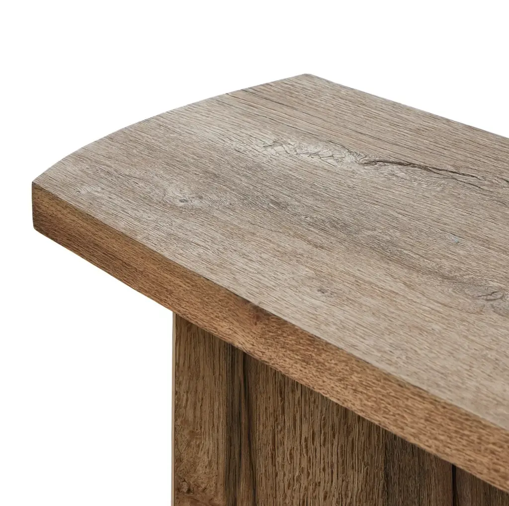 Crafted with thick oak veneer and a curved base, the Brinton console table has strong lines and a subtle rustic finish, making it a versatile addition to any entryway or living room.