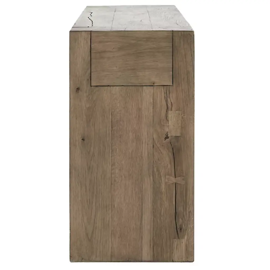 The Bristol Console Table by Classic Home showcases bold design and masterful craftsmanship, making it a standout piece in any room. Handcrafted with exposed joinery, including oversized dovetails and bowtie joints, it creates a striking visual statement. The hand-finished and distressed wood highlights its unique character, ensuring no two tables are alike. Perfect for adding both style and functionality, this console table blends timeless appeal with a one-of-a-kind aesthetic to enhance your home.