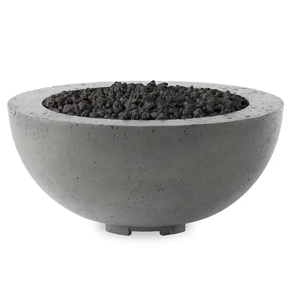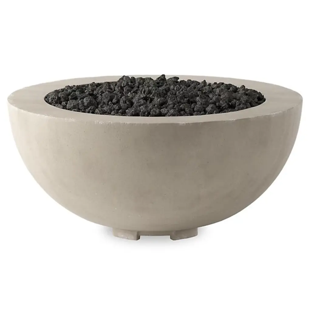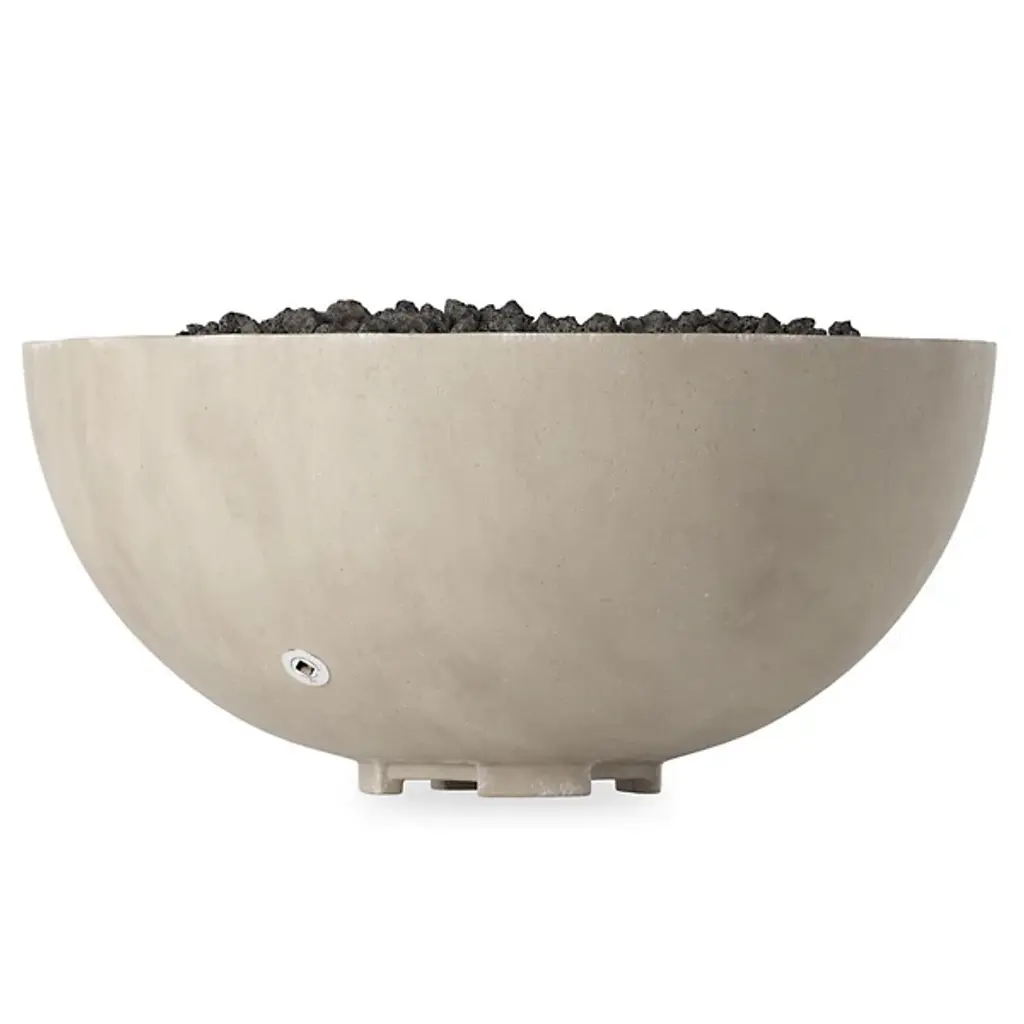 The Bronson Outdoor Fire Table from Four Hands is where style meets functionality. Crafted from durable concrete, Bronson seamlessly blends contemporary and industrial aesthetics, adding a touch of sophistication to your outdoor space. Equipped with a cross-shaped burner and filled with lava rock, this fire table delivers warmth and visual intrigue. With a BTU rating of 65,000, it provides ample heat for cozy gatherings. It features a key valve ignition. The propane tank enclosure is sold separately.