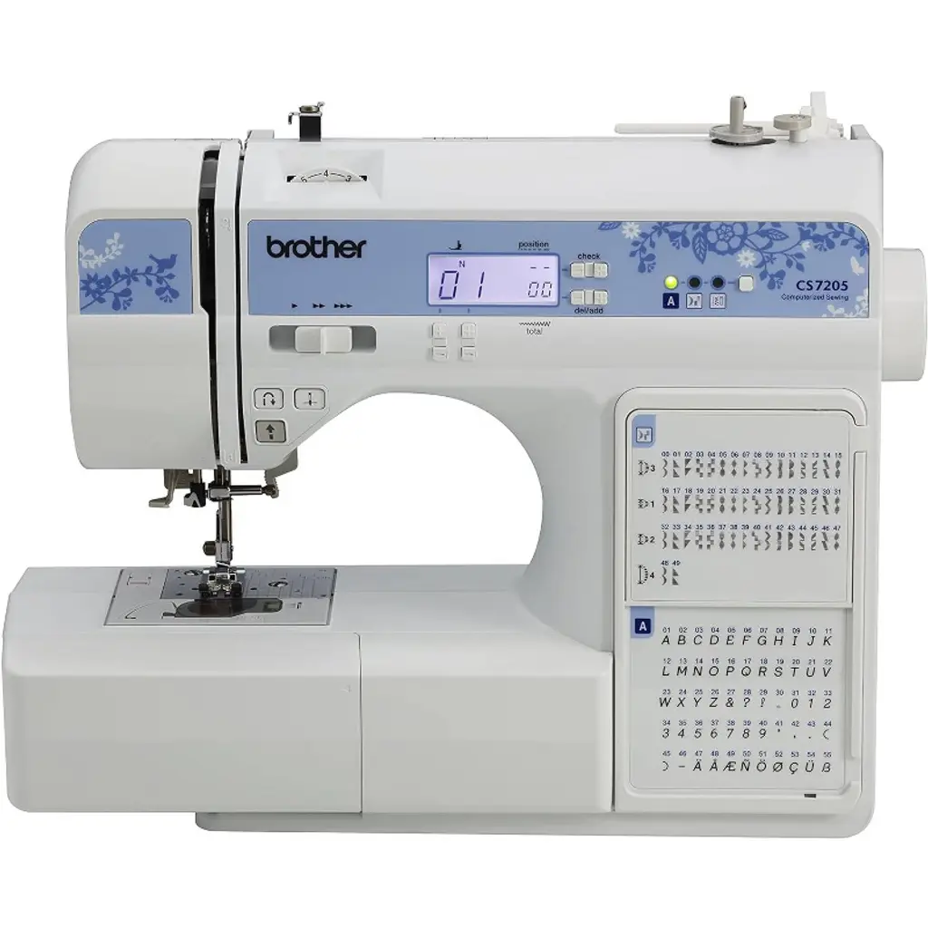 The Brother CS7205 computerized sewing machine allows you to view all its built-in stitches on its convenient flip chart. Choose from 150 decorative, quilting and utility stitches, plus a sewing lettering font with 55 alphanumeric stitches for basic monogramming. Also features a large back-lit LCD display for easy viewing, even in low light, variable speed control, brightly lit workspace, drop feed dogs, automatic needle threader and much more! Packed with included accessories, this machine is a great value with 11 included sewing/quilting feet and wide table.