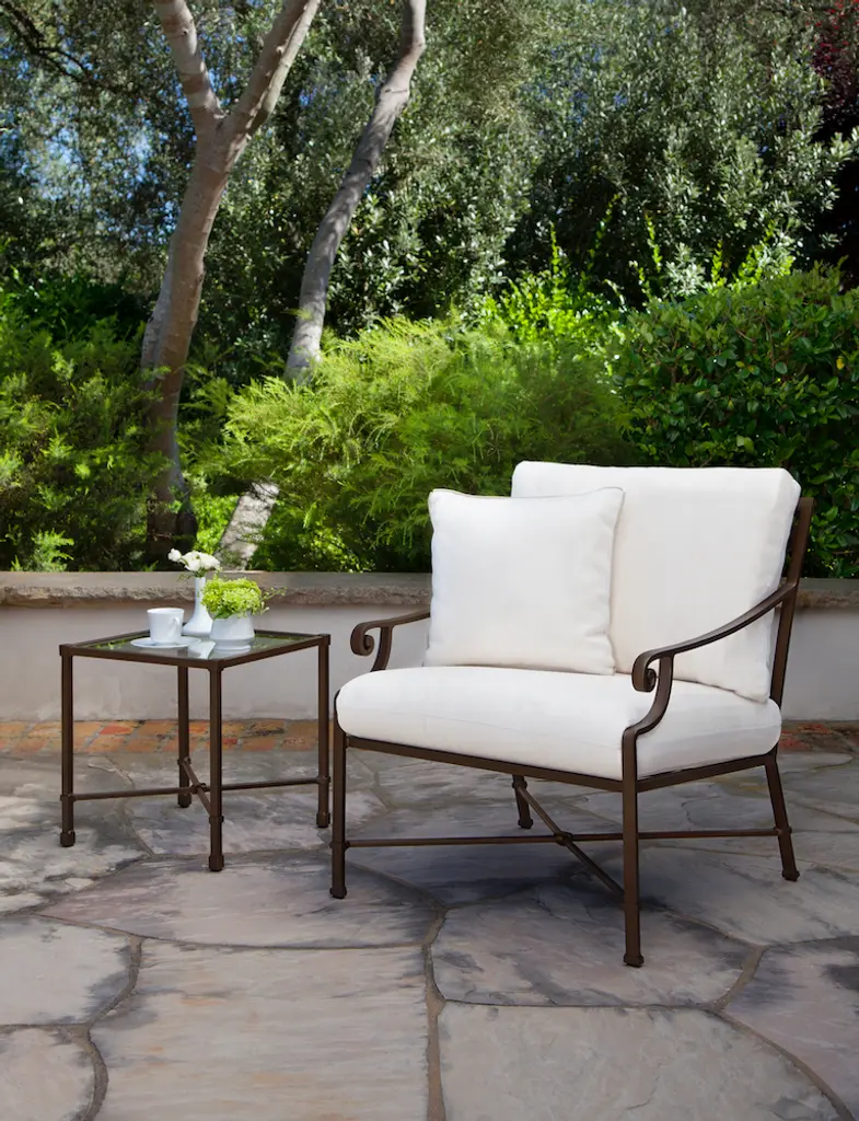 Venetian by Richard Frinier features a refined silhouette highlighted by timeless Neoclassic details. The x-back and cross-stretcher are framed by elegantly scaled rectangular lines, including a subtly flared and contoured back. Gracious spiral volute details at the end of the arms, architectural banding details on the legs, and the cross-stretcher are proportionately placed to enhance the overall balance. Care & Maintenance: Wash your furniture with a solution of mild detergent and water, rinse with clear water, and dry thoroughly. Assembly Required? Yes Extruded and cast aluminum frames. Extruded aluminum frames are affordable, easy to clean, and resistant to corrosion. Powder-coated frames.Powder coating adds to the aluminum’s durability, providing a protective barrier against weather conditions and corrosion The glass tabletops offer an elegant look while resisting variations in outdoor temperatures Aluminum table bases and tables with glass tabletops in clear or smooth rough .