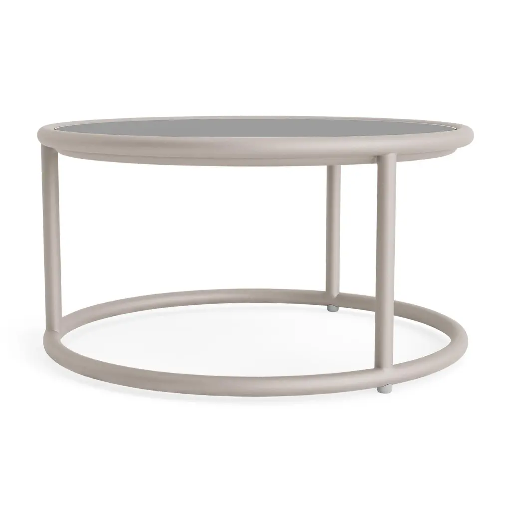 Brown Jordan Walter Lamb Aluminum 20" Round Occasional Table, Glass Top, Dove Frame