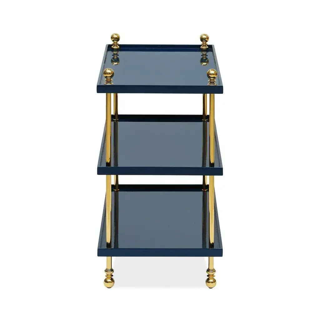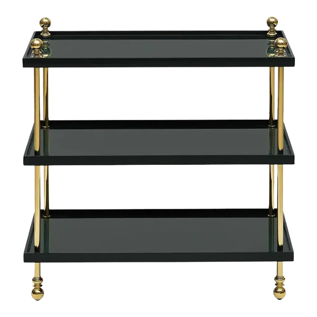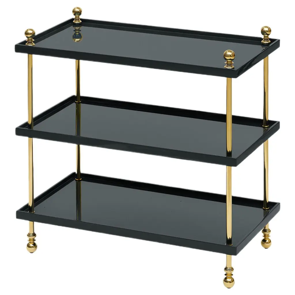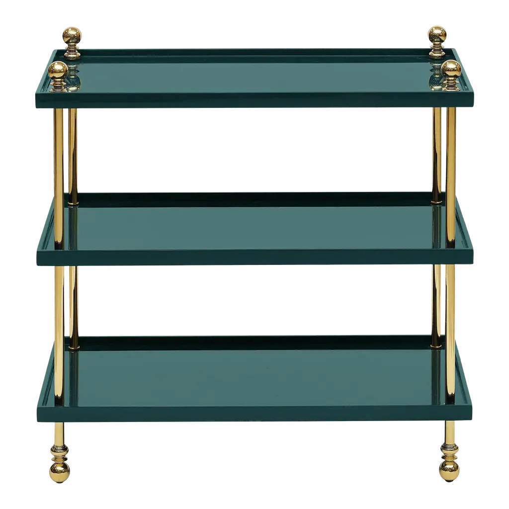 Bunny, always in search of the next perfect drinks table for her projects, began Bunny Williams Home because she couldn’t always find the right one. Our newest is a three-tiered lacquered drinks table that’s as much a conversation starter as a practical place for guests to place their drink. Each tier is a shallow tray, offering just the right amount of space for your favorite libations, a scattering of hors d’oeuvres, or even a well-placed candle or two. Available in three luscious lacquer colors, all complemented by gleaming brass posts topped by chic brass finials that adds just the right amount of polish.