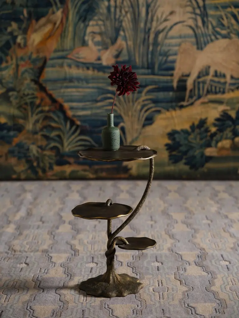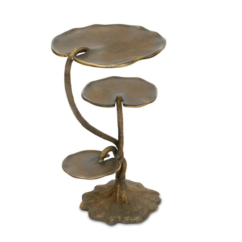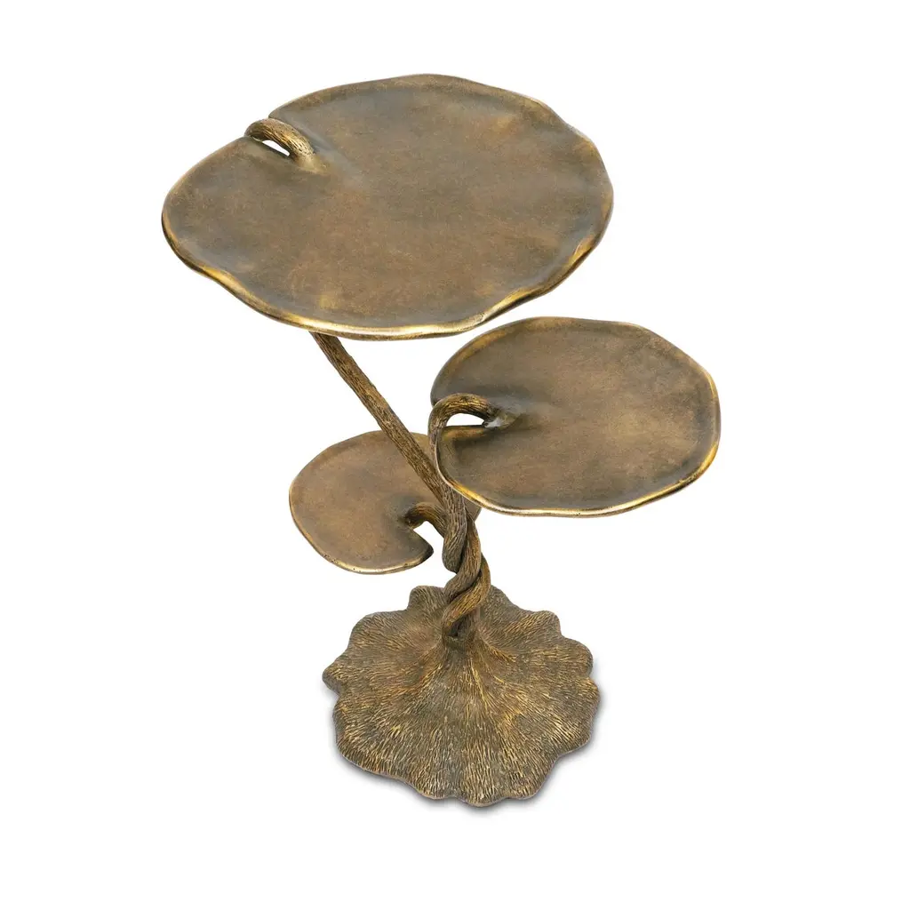 From her cozy screened porch, Bunny has the perfect view of water lily pads gently floating on her koi pond. It got us thinking—if those lily pads can support a visiting frog, why not your morning coffee or an evening drink? So, we took that idea and brought it to life in cast brass. Crafted by our artisans, this piece is playful yet purposeful, with a rich, dark oil-rubbed bronze finish that works in almost every room.
