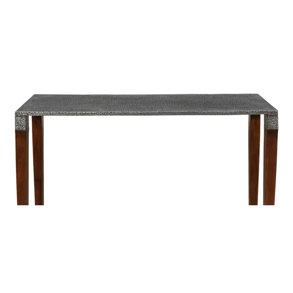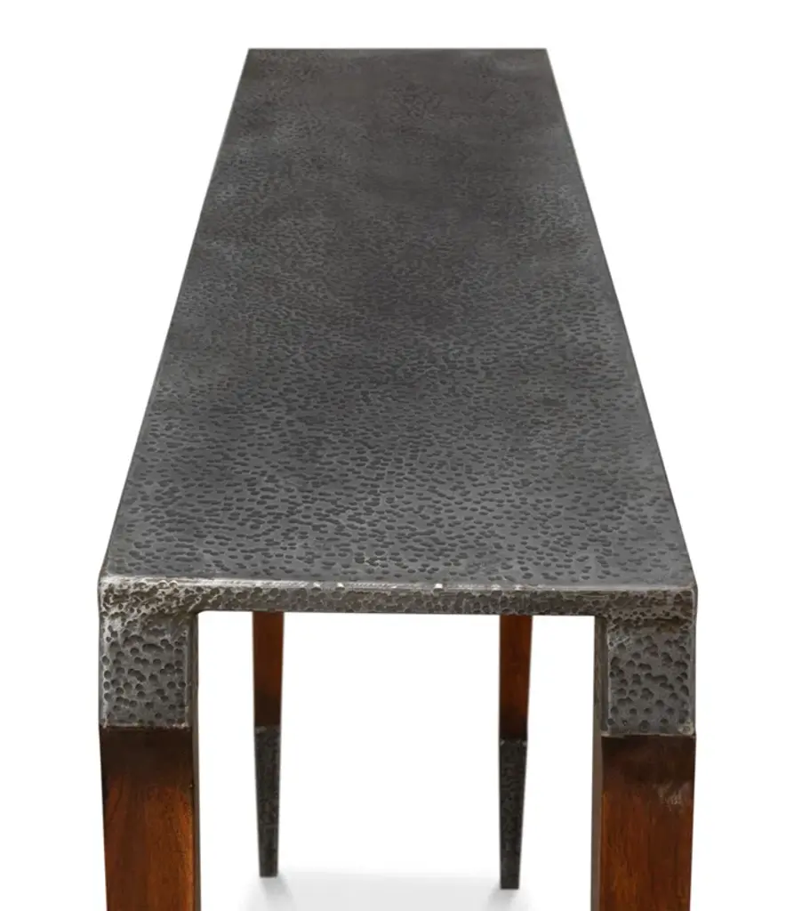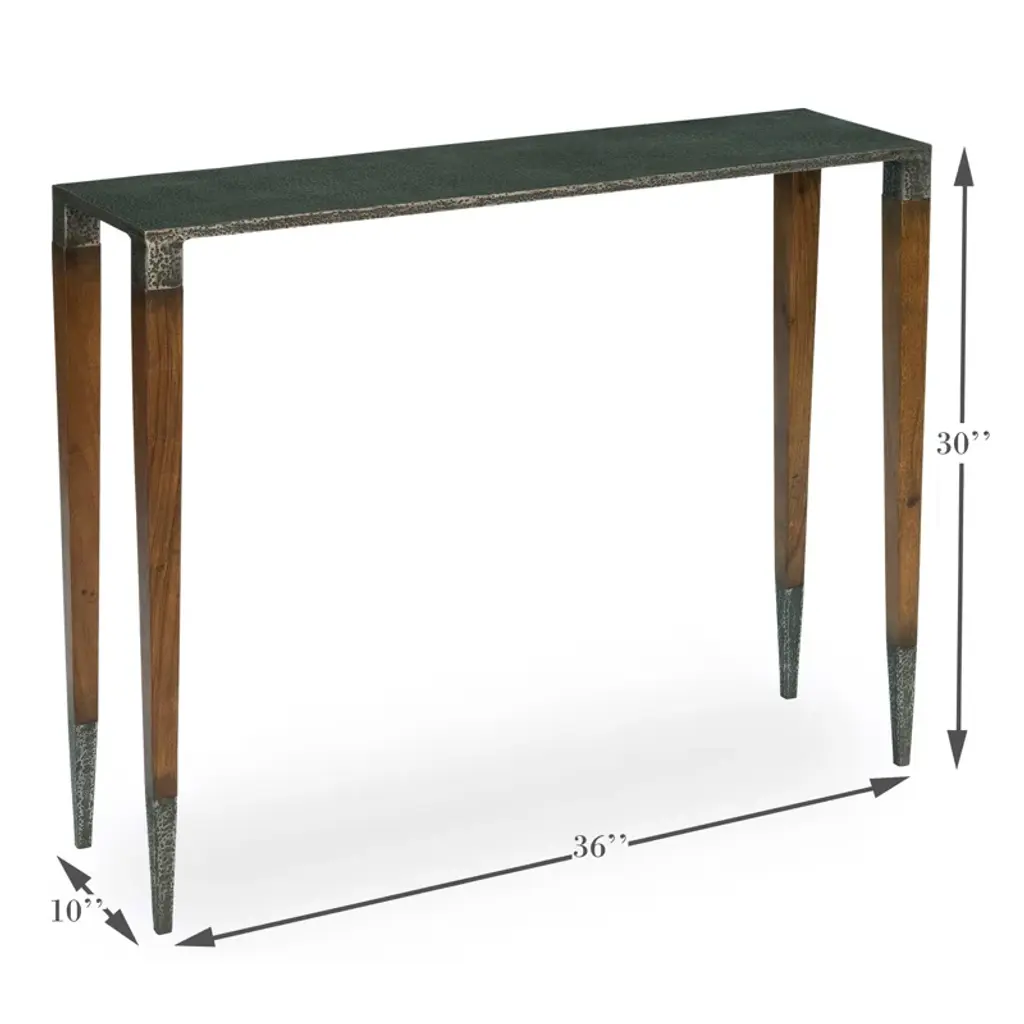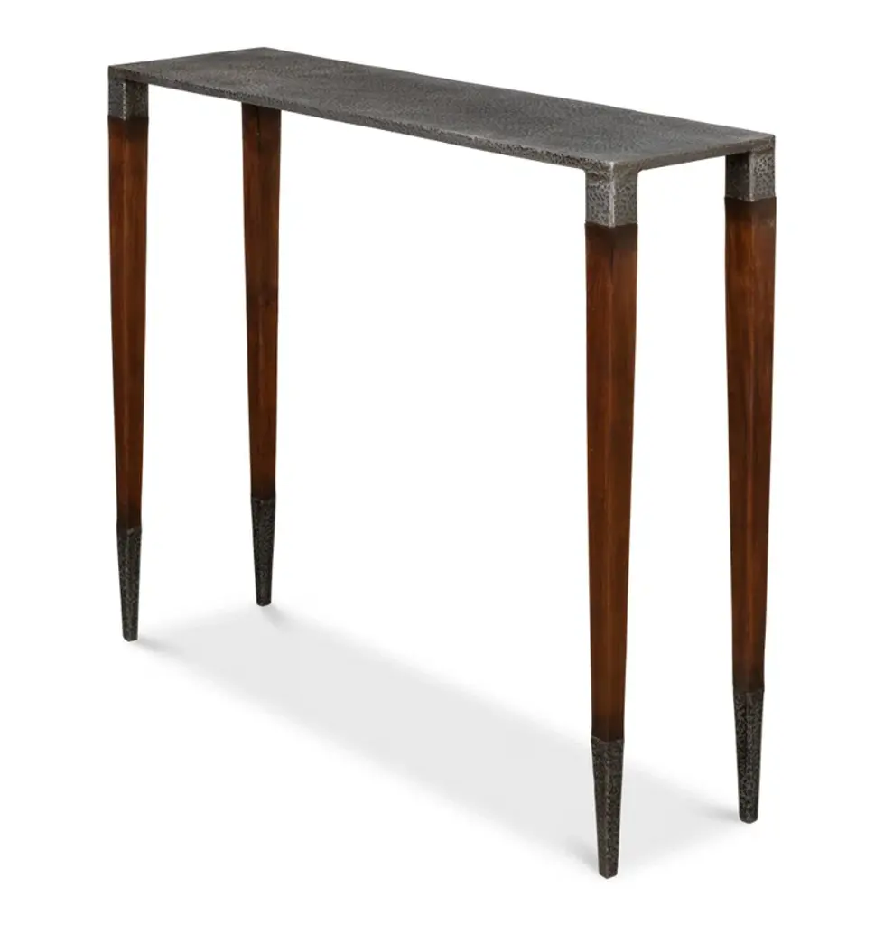 The console table in the Wick collection, the Wick console table features a 1.5" thick solid Vermont maple wood top. The maple wood top fits securely, filling the console's narrow steel frame from edge to edge. Long, elegant, tapered steel legs are hand-hammered by Hubbardton Forge's makers in their Vermont forge. All Hubbardton Forge products are hand-crafted to last a lifetime.