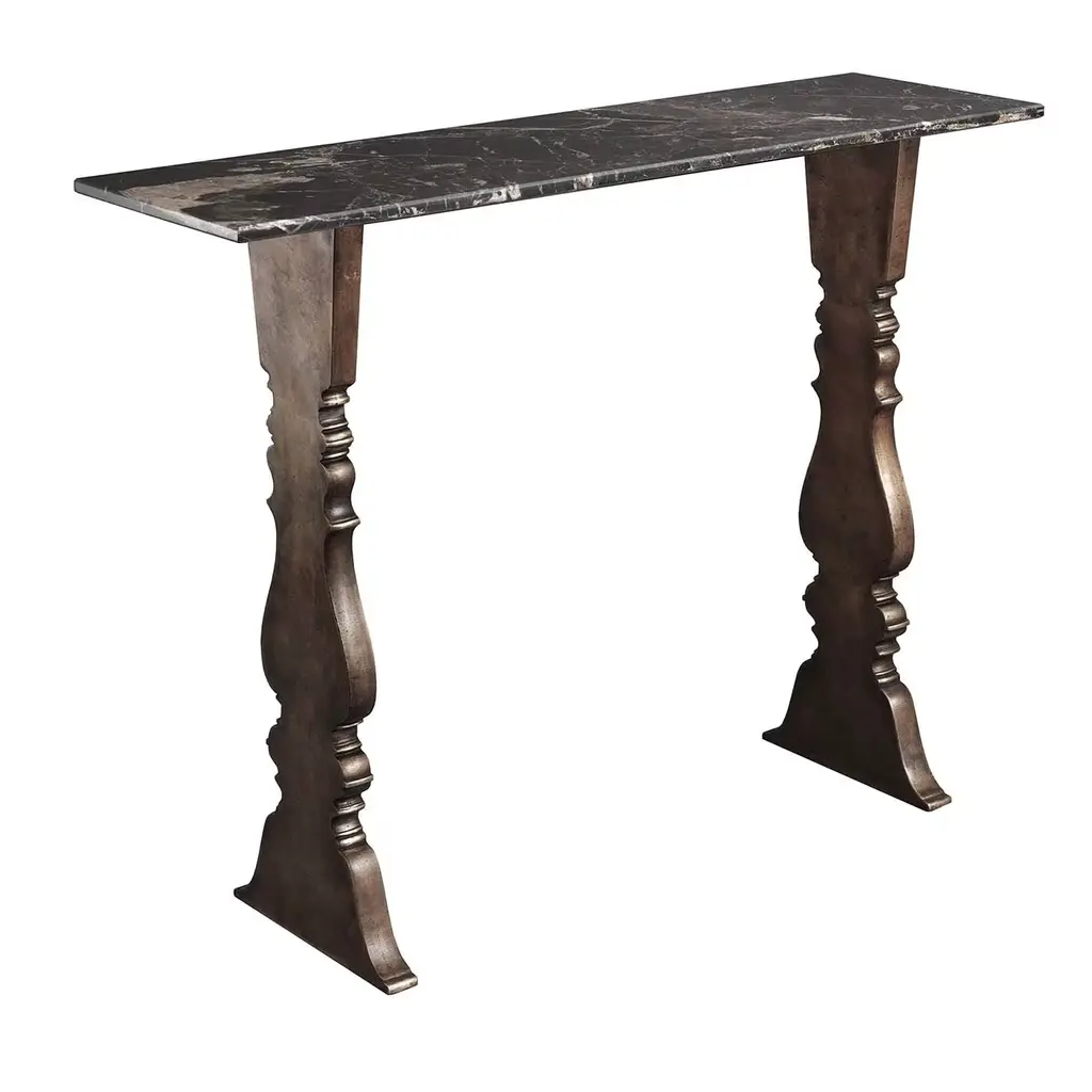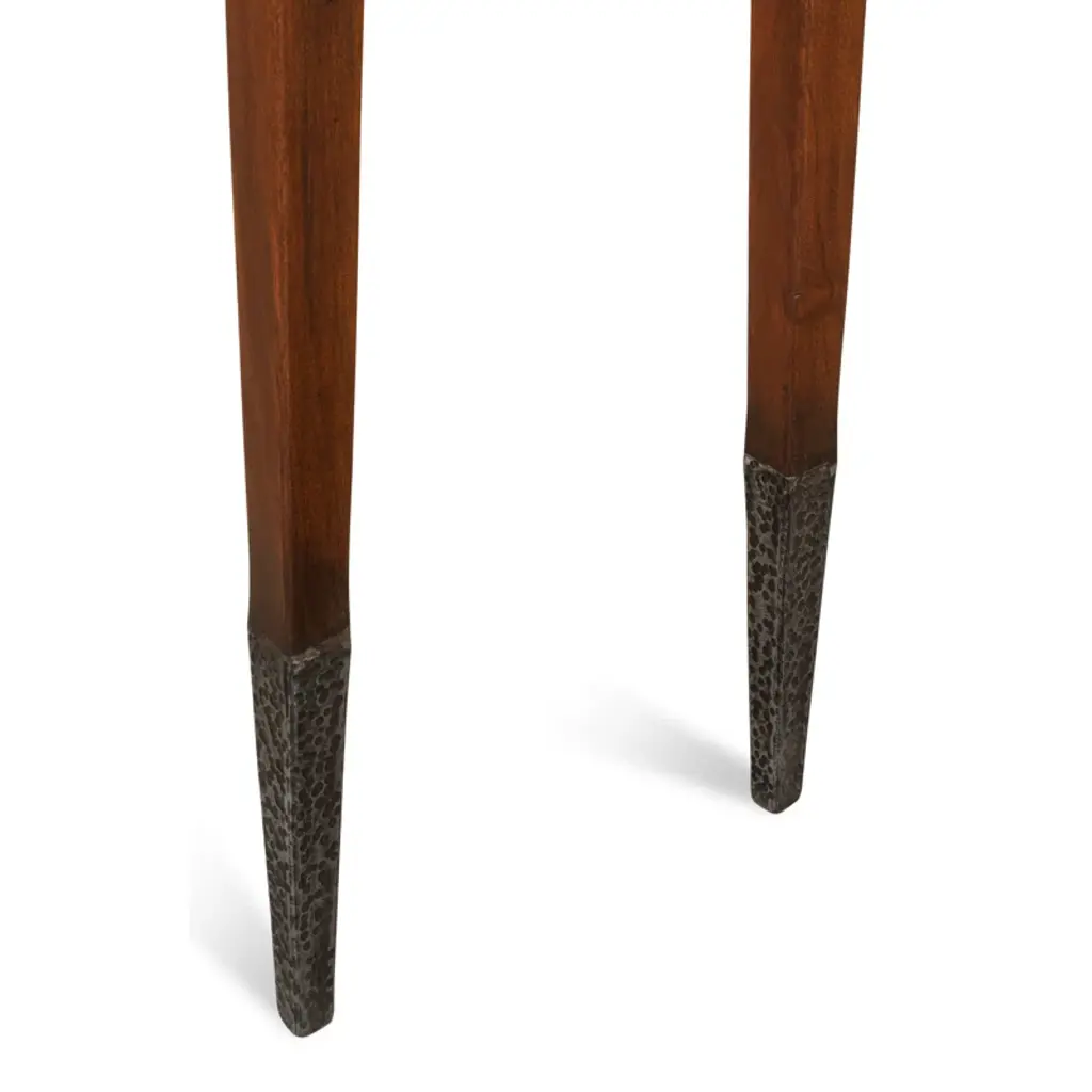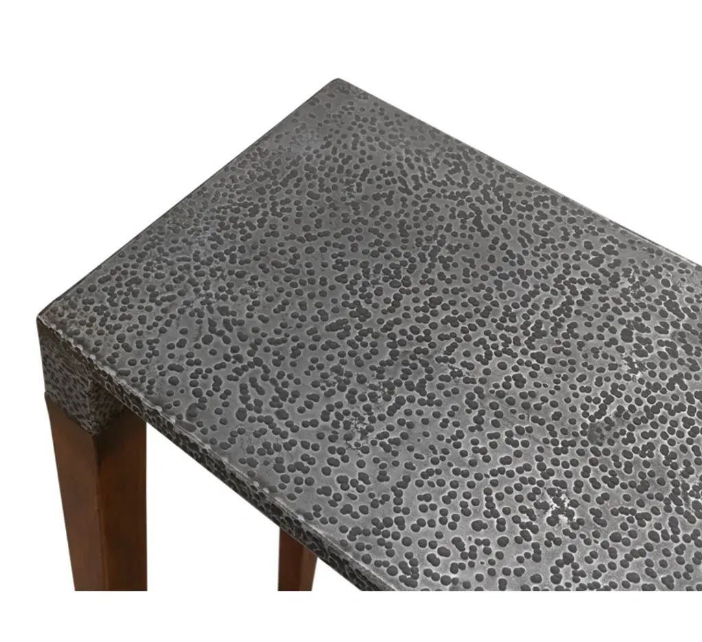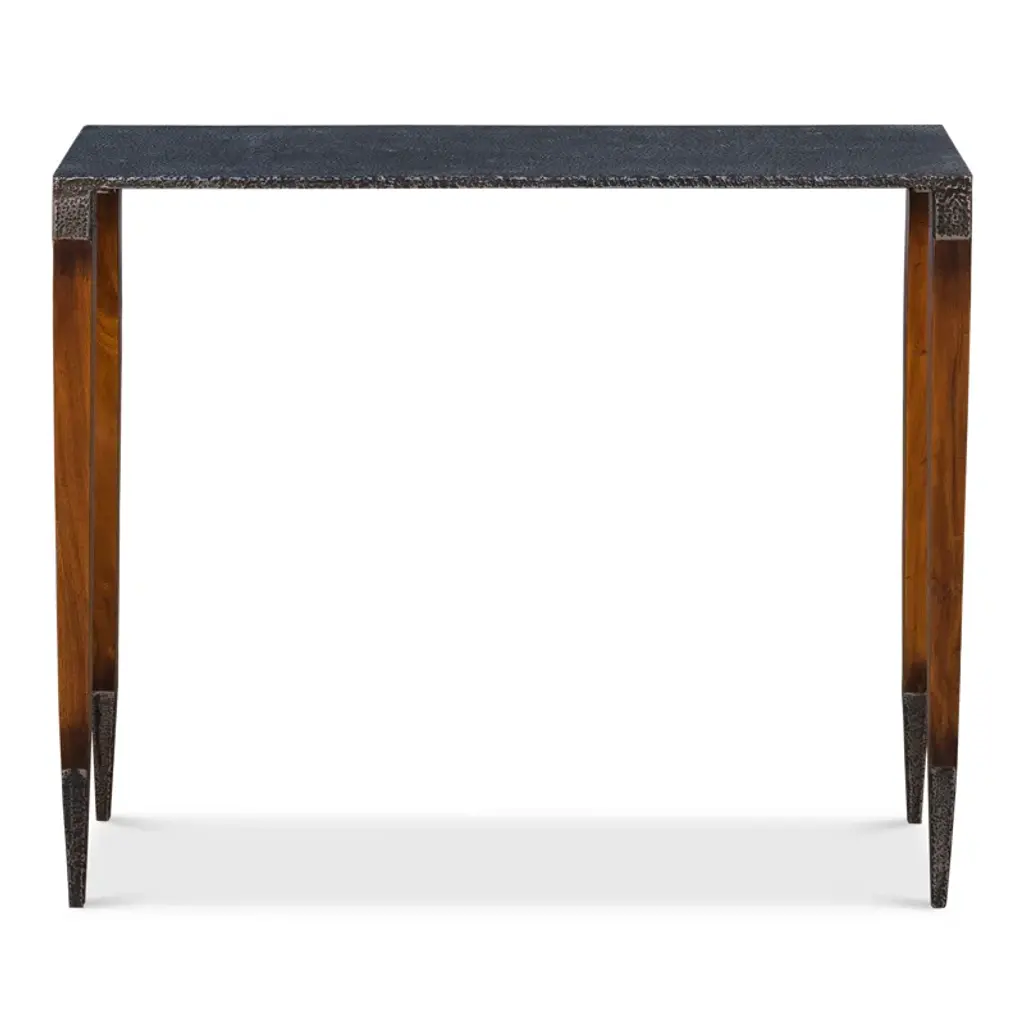 The console table in the Wick collection, the Wick console table features a 1.5" thick solid Vermont maple wood top. The maple wood top fits securely, filling the console's narrow steel frame from edge to edge. Long, elegant, tapered steel legs are hand-hammered by Hubbardton Forge's makers in their Vermont forge. All Hubbardton Forge products are hand-crafted to last a lifetime.