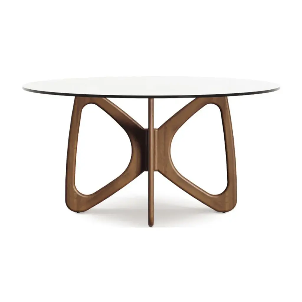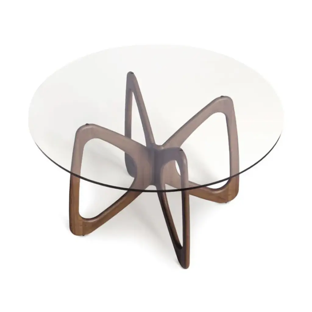 Elevate your living environment with the Butterfly Round Glass Top Table from Copeland Furniture. Blending modern aesthetics and natural inspiration, this striking piece adds sophistication to any space. Crafted from solid American black walnut and oak, it's perfect for everyday use or as a conversation piece for lively gatherings. Highlights