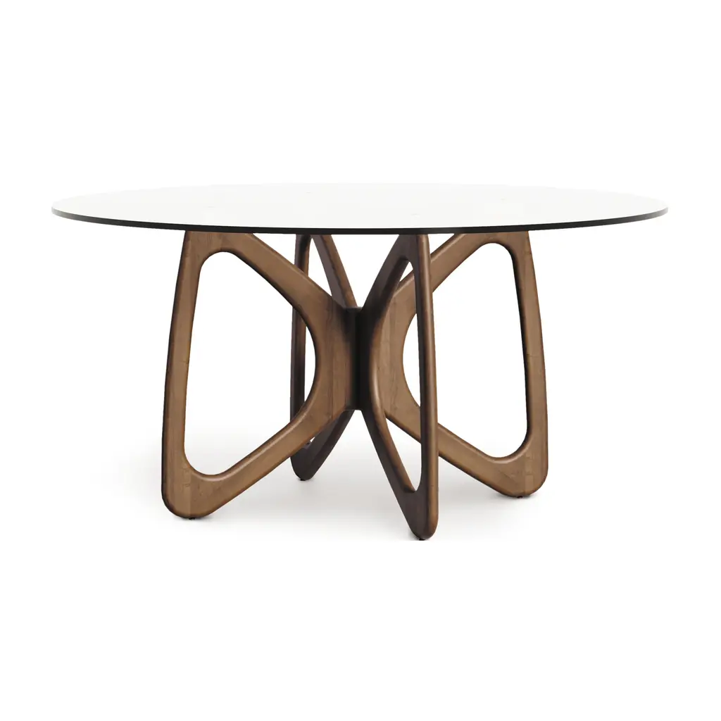 Elevate your living environment with the Butterfly Round Glass Top Table from Copeland Furniture. Blending modern aesthetics and natural inspiration, this striking piece adds sophistication to any space. Crafted from solid American black walnut and oak, it's perfect for everyday use or as a conversation piece for lively gatherings. Highlights