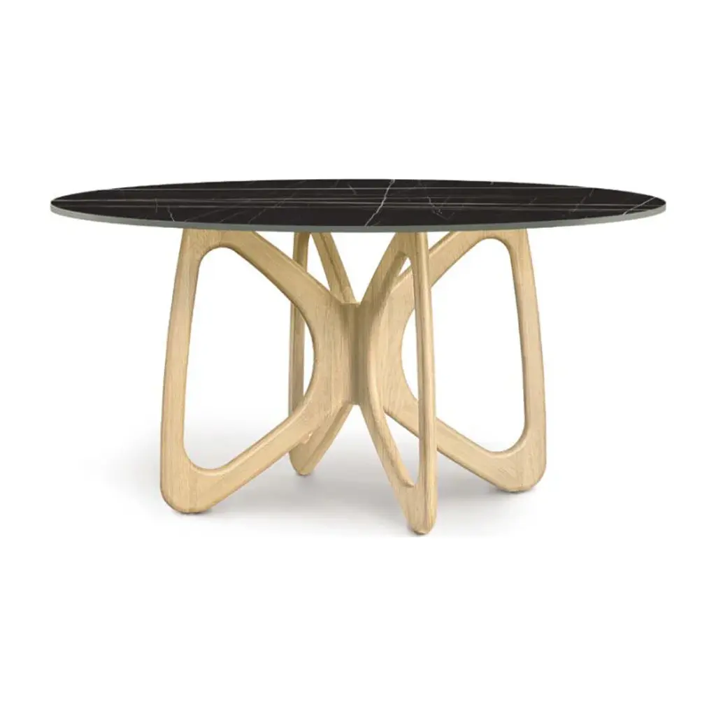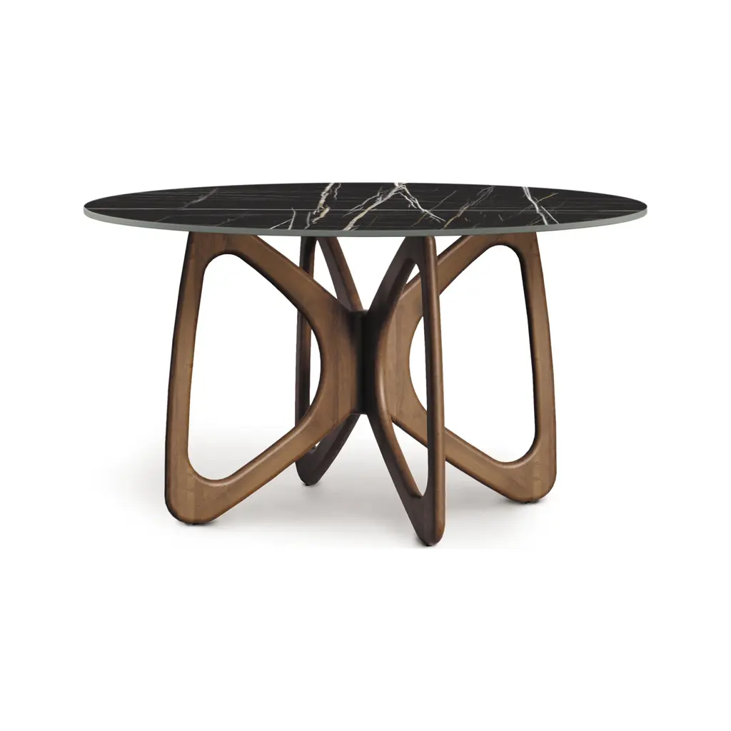 Introduce nature into your space with the Butterfly Round Sintered Stone Table from Copeland Furniture. Made with solid American black walnut hardwood and oak, this round sintered stone table is a modern yet natural addition to any home. Perfect for everyday use or as a conversation piece, this table brings dynamic beauty to any corner of your home. Highlights
