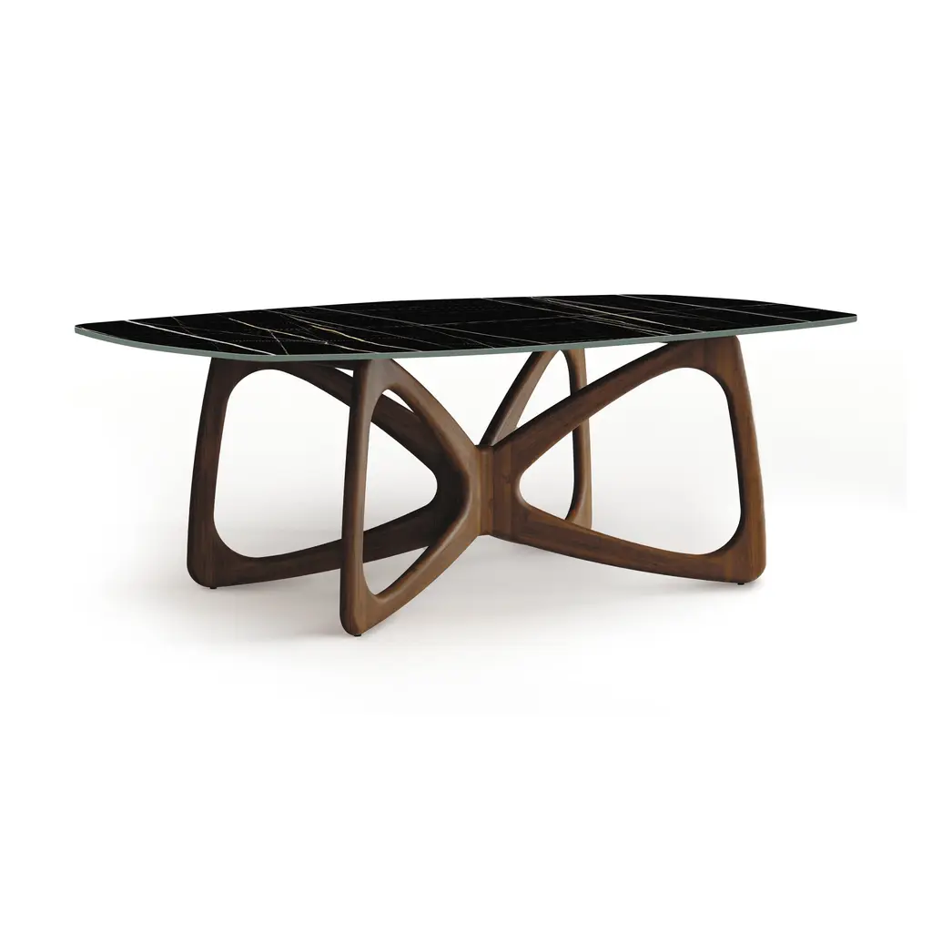 Welcome the beauty of nature into your living space with the Butterfly Sintered Stone Boat Shaped Table From Copeland Furniture. The boat shaped table blends modern aesthetics with natural inspiration for a striking addition to any room. Crafted in solid American black walnut hardwood or solid Oak, it's perfect for everyday use and will elevate any gathering with its eye-catching nature-inspired design. Highlights