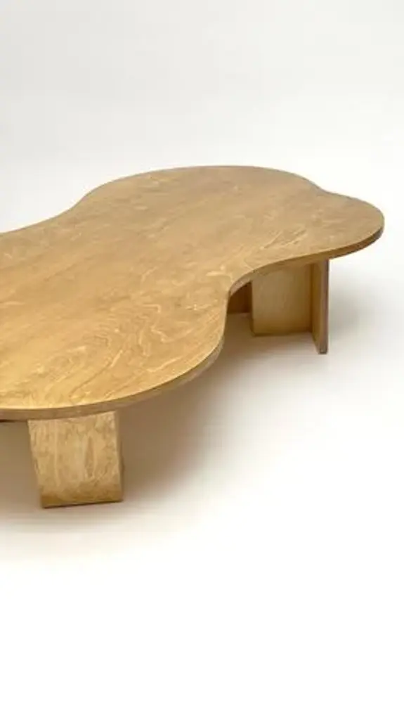 Spill Table Mono by Goons Dimensions: W 148 x D 98 x H 32 cm Materials: Birch plywood. Butterscotch finish. Dimensions can be adjusted +/- 10 cm Goons is located in Paris, France. All of their designs are made out of wood.