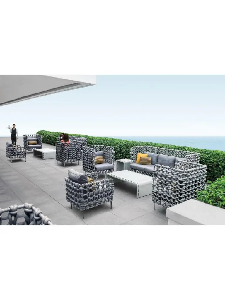 Cabaret coffee table by Kenneth CobonpueMaterials: Fiberglass reinforced polymer, polyester fabric, urethane foam.Dimensions: 78cm x 136.5 cm x H 36.5cm Cabaret wraps you in the warmth of its fabric layers like an oversized knit sweater. The innovative knotting and weaving technique used in the design lends sophistication to any room.Also available in other sizes and colors.Designer's BiographyKenneth Cobonpue is a multi-awarded furniture designer and manufacturer from Cebu, Philippines. His passage to design began in 1987, studying Industrial Design at the Pratt Institute in New York. While completing his studies, he apprenticed for a leather and wood workshop near Florence, Italy. He went on to study Furniture Marketing and Production at the Export-Akademie Baden-Württemberg in Reutlingen, Germany, under a private and state scholarship program, and subsequently worked in Bielefeld and Munich.Kenneth returned home to Cebu in 1996 to manage Interior Crafts of the Islands, Inc., a furniture design and manufacturing company founded by his mother Betty Cobonpue in 1972. Discovering that modern design could have a new face using natural fibers and materials, Kenneth created pieces of functional art, offering an alternative to the Western definition of modern design. Today, the Kennethcobonpue brand has become known globally for its unique designs and extensive roster of clientele, including Hollywood celebrities and members of royalty.With his masterful way of integrating nature, traditional craft and innovative technologies, designer and creative director Kenneth Cobonpue has earned international awards and recognition for his creative, organic, and expressive pieces. Working closely with some of the world’s leading designers, from household names to emerging talents, Kenneth has been pushing the envelope for design in the Philippines and sharing his vision to a global audience. Awards to his credit include five Japan Good Design Awards, the grand prize at Singapore International Design Competition, the Design for Asia Award of Hong Kong, the American Society of Interior Design Top Pick selection and the French Coup de Coeur award. Several of his designs were selected for several editions of the International Design Yearbook published in London and New York. Phaidon’s book entitled “& FORK” underscores Kenneth’s position as a leader of a new movement incorporating new technologies with crafts. In 2007, TIME magazine called him “rattan’s first virtuoso”. Kenneth was named the Designer of the Year in the first edition of Maison et Objet Asia held in March 2014 in Singapore.Kenneth reveals new work each year in the design shows from Milan to New York, and he speaks regularly about Southeast Asian design all over the world. He has also appeared in European television and in countless international magazines and newspapers around the world. Various Cobonpue designs have also appeared in full-length feature films and television, such as Oceans 13 and CSI.