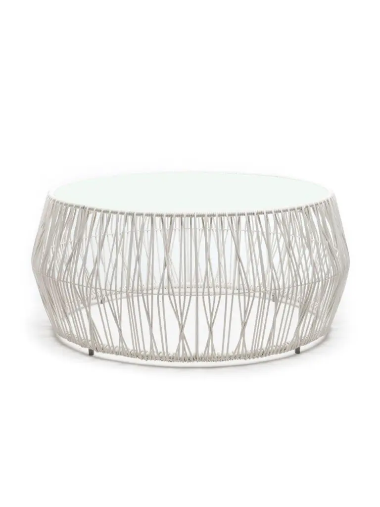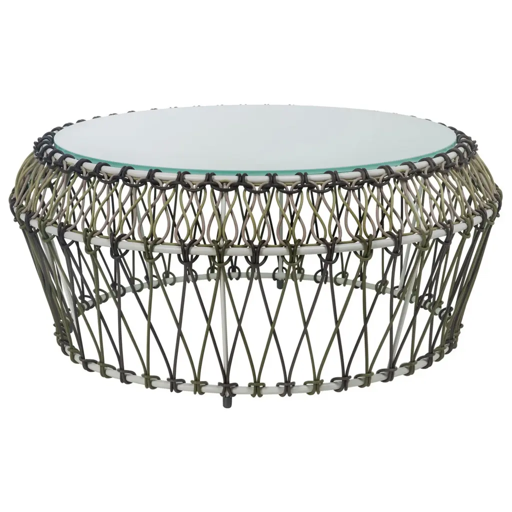 Calyx coffee table by Kenneth Cobonpue.Materials: Polyethelene steel, stonecast, and glass. Dimensions: Table Diameter 90 cm x H 40cm Glass Diameter 76.5 cm x H 1cmLike the lustrous diamond, Calyx features a matrix of interwoven polyethylene strands and a wide crown, making any space stylish with its elegant silhouette.Also available in other sizes and colors. Designer's BiographyKenneth Cobonpue is a multi-awarded furniture designer and manufacturer from Cebu, Philippines. His passage to design began in 1987, studying Industrial Design at the Pratt Institute in New York. While completing his studies, he apprenticed for a leather and wood workshop near Florence, Italy. He went on to study Furniture Marketing and Production at the Export-Akademie Baden-Württemberg in Reutlingen, Germany, under a private and state scholarship program, and subsequently worked in Bielefeld and Munich.Kenneth returned home to Cebu in 1996 to manage Interior Crafts of the Islands, Inc., a furniture design and manufacturing company founded by his mother Betty Cobonpue in 1972. Discovering that modern design could have a new face using natural fibers and materials, Kenneth created pieces of functional art, offering an alternative to the Western definition of modern design. Today, the Kennethcobonpue brand has become known globally for its unique designs and extensive roster of clientele, including Hollywood celebrities and members of royalty.With his masterful way of integrating nature, traditional craft and innovative technologies, designer and creative director Kenneth Cobonpue has earned international awards and recognition for his creative, organic, and expressive pieces. Working closely with some of the world’s leading designers, from household names to emerging talents, Kenneth has been pushing the envelope for design in the Philippines and sharing his vision to a global audience. Awards to his credit include five Japan Good Design Awards, the grand prize at Singapore International Design Competition, the Design for Asia Award of Hong Kong, the American Society of Interior Design Top Pick selection and the French Coup de Coeur award. Several of his designs were selected for several editions of the International Design Yearbook published in London and New York. Phaidon’s book entitled “& FORK” underscores Kenneth’s position as a leader of a new movement incorporating new technologies with crafts. In 2007, TIME magazine called him “rattan’s first virtuoso”. Kenneth was named the Designer of the Year in the first edition of Maison et Objet Asia held in March 2014 in Singapore.Kenneth reveals new work each year in the design shows from Milan to New York, and he speaks regularly about Southeast Asian design all over the world. He has also appeared in European television and in countless international magazines and newspapers around the world. Various Cobonpue designs have also appeared in full-length feature films and television, such as Oceans 13 and CSI.