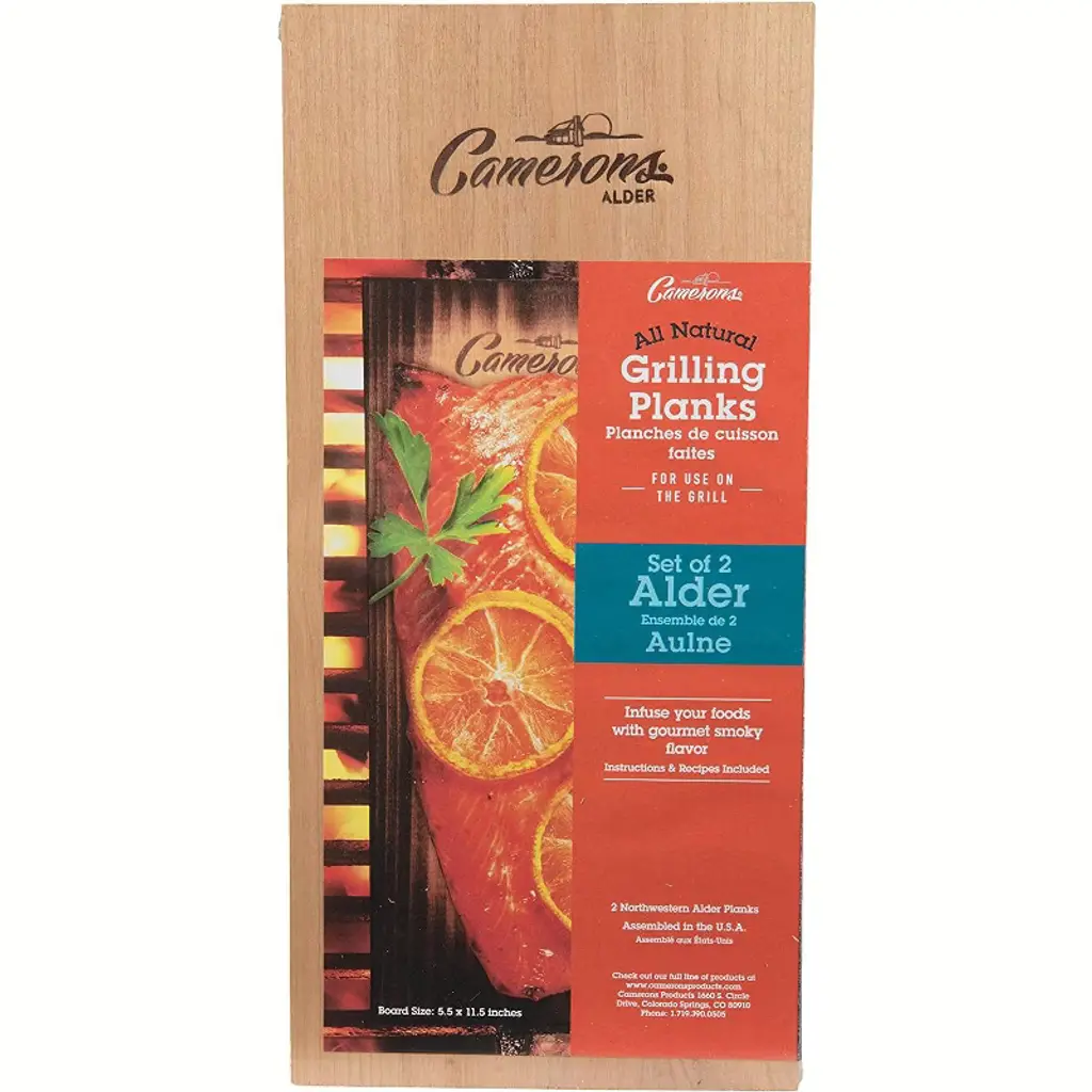 Camerons Products Grilling Planks - 2 Pack Alder - Premium 5.5 X 11.5 Alder For Barbecue Salmon Seafood Steak Burgers Pork Chops Vegetables And