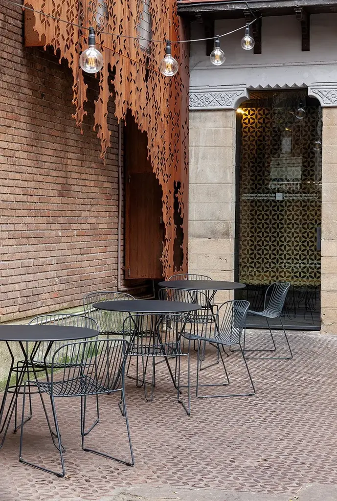 Capri is a round table made of galvanized steel, polyester powder coated. Suitable for outdoor, indoor, and contract use. Available table-tops: metal and compact.