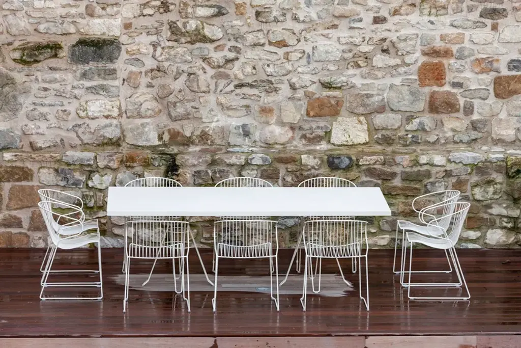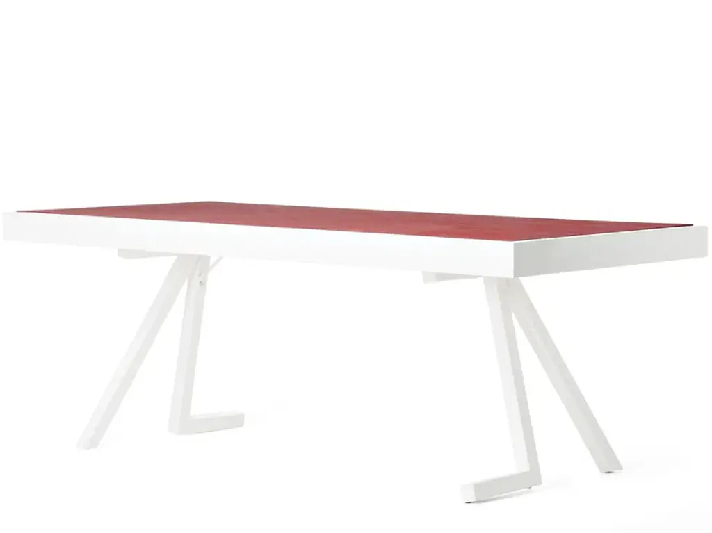 Capri is a rectangular table made of galvanized steel, polyester powder coated. Suitable for outdoor, indoor, and contract use. Available table-tops: metal and compact.