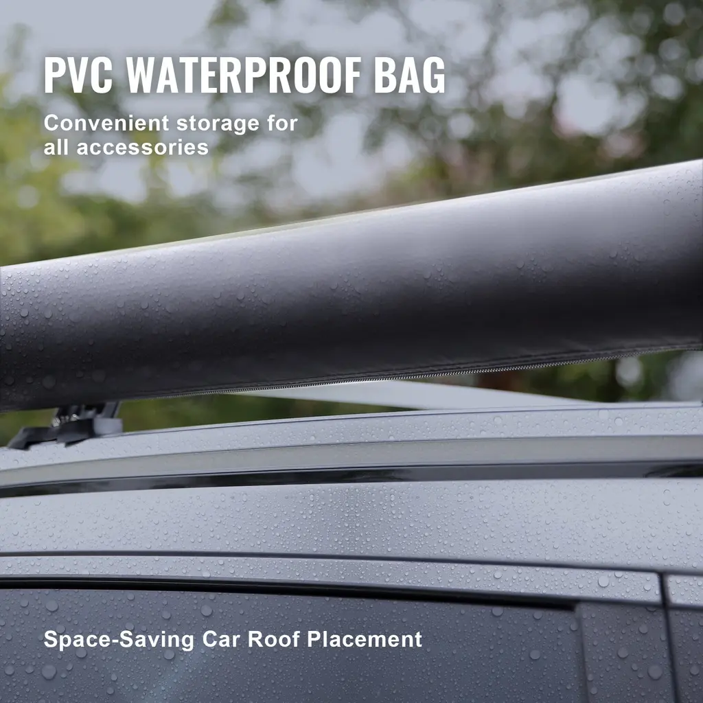 Expansive Coverage: Our large 6.6x8.2 ft/4.6x6.6 ft/10x7 ft car side awning provides complete sunshade, effectively shielding you from UV rays. Its windproof and waterproof design ensures you stay protected in any weather. It comfortably accommodates 3-5 people for various activities. Heavy-Duty & Durable Material: Crafted from 280G polyester fabric with a PU 3000mm coating, the vehicle awning is dense and durable. The rust-proof aluminum alloy support poles with reinforced corners, and rubber connectors are designed for added strength. Thickeded wind-resistant ropes are ready to withstand all weather conditions. Sunproof, Waterproof & Windproof: Featuring a black sunshade coating, waterproof layer, and heat-insulating design, our car awning excels in sunshade, waterproofing, insulation, durability, and UV resistance. Say goodbye to heat build-up and rainwater seepage for a cool and dry camping experience. User-Friendly Design: Professional-grade luminous ground pegs ensure visibility at night and prevent tripping. Our SUV awning comes with a waterproof PVC carry bag for space-saving storage and portability. Plus, it's a breeze to install, even for beginners. Versatile Compatibility: This truck awning effortlessly fits various vehicles with roof racks, luggage carriers, and more. Whether you attach it to the side or rear of your vehicle or use the steel poles as a ground shelter, it offers ample space and a stable structure, perfect for camping, picnics, family gatherings, or road trips. Package Content 1 x Awning Cloth 2 x L-shaped Mounting Brackets 2 x Installation Pads 4 x M8x55 Hex Bolts 4 x M8x20 Hex Bolts 8 x Hex Nylon Lock Nuts 2 x Ground Stakes 2 x Windproof Ropes 1 x PVC Storage Bag