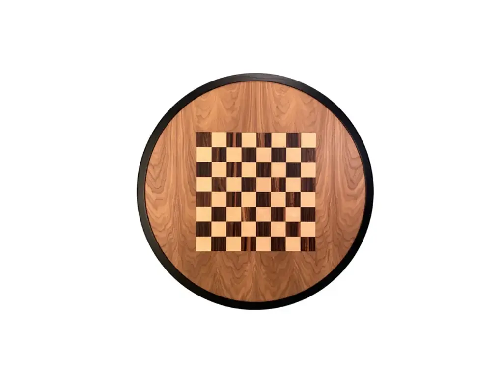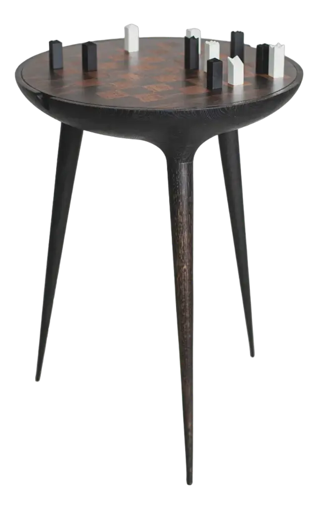 Game table made of ash wood with veneered chessboard on the top, and turned legs