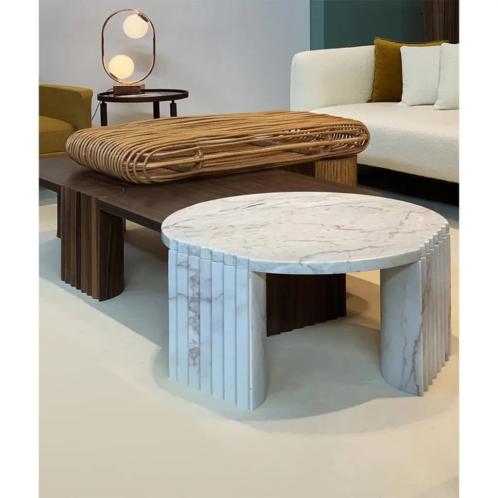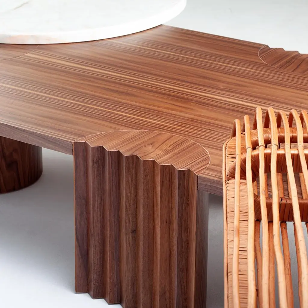 Caravel low table by CollectorMaterials: Caravel 1: Rattan, caravel 2: Walnut, caravel 3: Estremoz marbleDimensions: Caravel 1:W 120 cm D 61,5cm H 50 cm Caravel 2:W 150 cm D 80cm H 35 cmCaravel 3:Ø 80 cm H 38 cmColombo, the Italian explorer, left from Portugal with 3 (as low tables are) caravels to discover the world.Inspired by the different materials used on the boats, combined with the Portuguese craftmanship Federico Peri created these 3 tables using rattan, walnut and marble.The Collector brand aims to be part of the daily life by fusing furniture to our home routine and lifestyle, that’s why we’ve designed our pieces with the intention to embrace diverse styles and to blend in inside anycontemporary setting.Described by our motto: “built to fit a good idea.”, this wide range of product typologies were designed to work in diverse layers of importance. It can work as a center piece of the house, with strong personality or just complementing the background by gently blending in. The result is a clean-lined furnishing collection that can easily be customized to work specifically and according to each unique need, reflecting essentially our traditional methods of furniture manufacturing with accurate industrial production methods.We strive to achieve the best quality possible by selecting the best materials and by the constant development of our production processes and manufacturing partnerships.