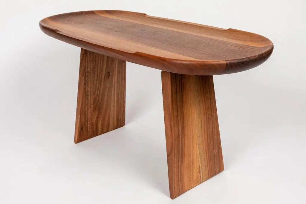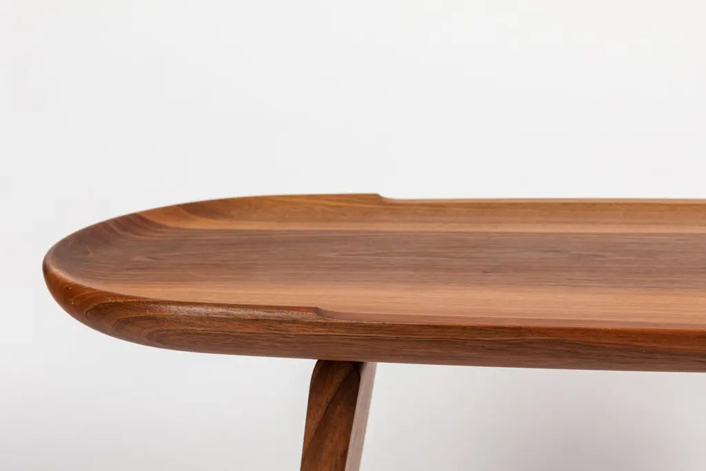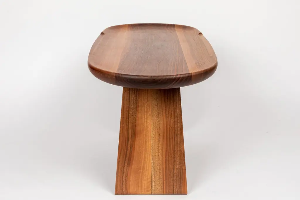 Carl Auböck Model #3511 walnut table. Designed in the 1950s, this incredibly refined and sculptural table is executed in beautifully grained walnut. Reminiscent of the organic modern designs of George Nakashima, Pierre Chapo and Sori Yanagi. Ideal as a low side table or coffee table for smaller spaces.Price is per item. Available in unlimited quantities. Please note that in-stock availability is subject to change at any time. Allow additional 3-4 weeks for items not in stock. Can take up to 8 weeks. Produced by Carl Auböck IV in the original Auböck Werkstätte in the 7th district of Vienna using the same exacting standards, high-quality materials, original molds and techniques of his legendary grandfather. Auböck's design career was long and varied, reaching its pinnacle of prestige at the Triennale di Milano in 1954, where he received four gold medals in recognition of his iconic work.Please note that only one representative example of the table is shown in the images. Finish varies from item to item due to the handmade nature of the walnut wood and fabrication.