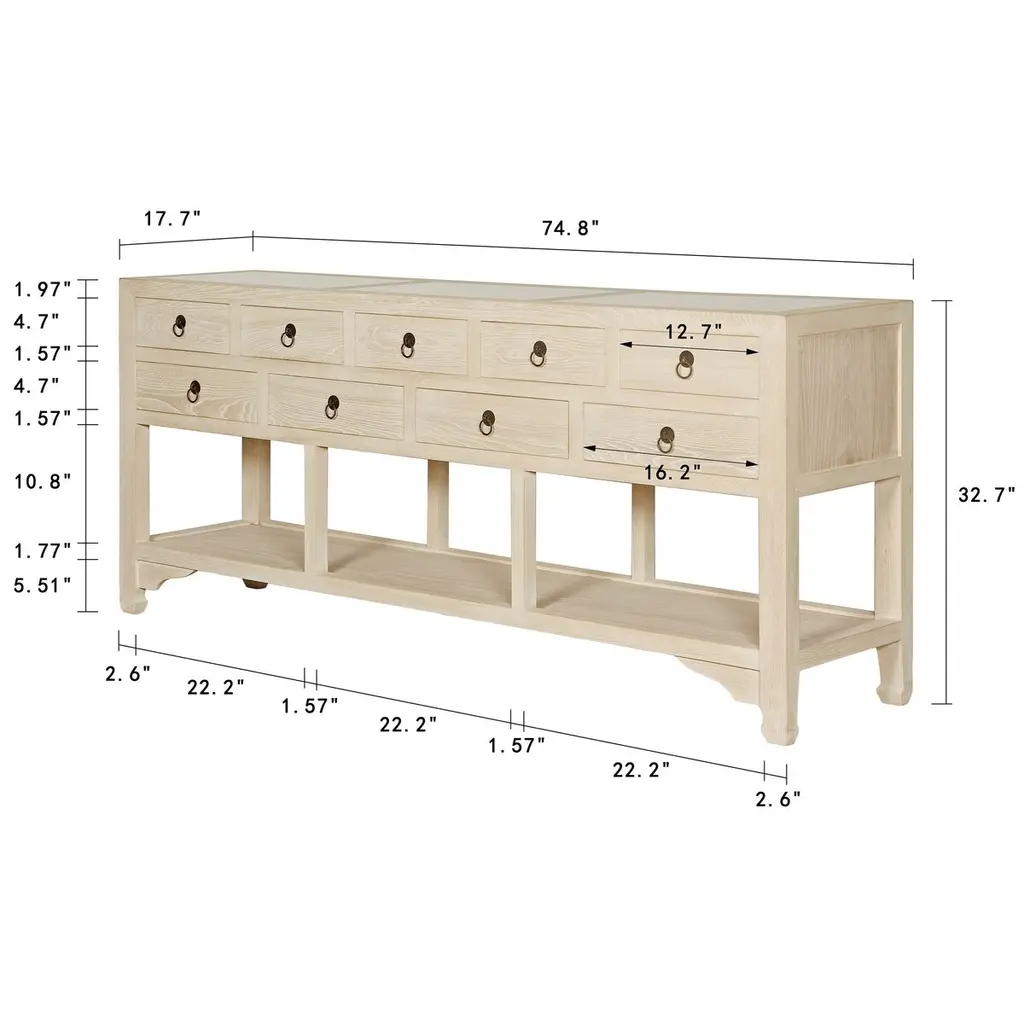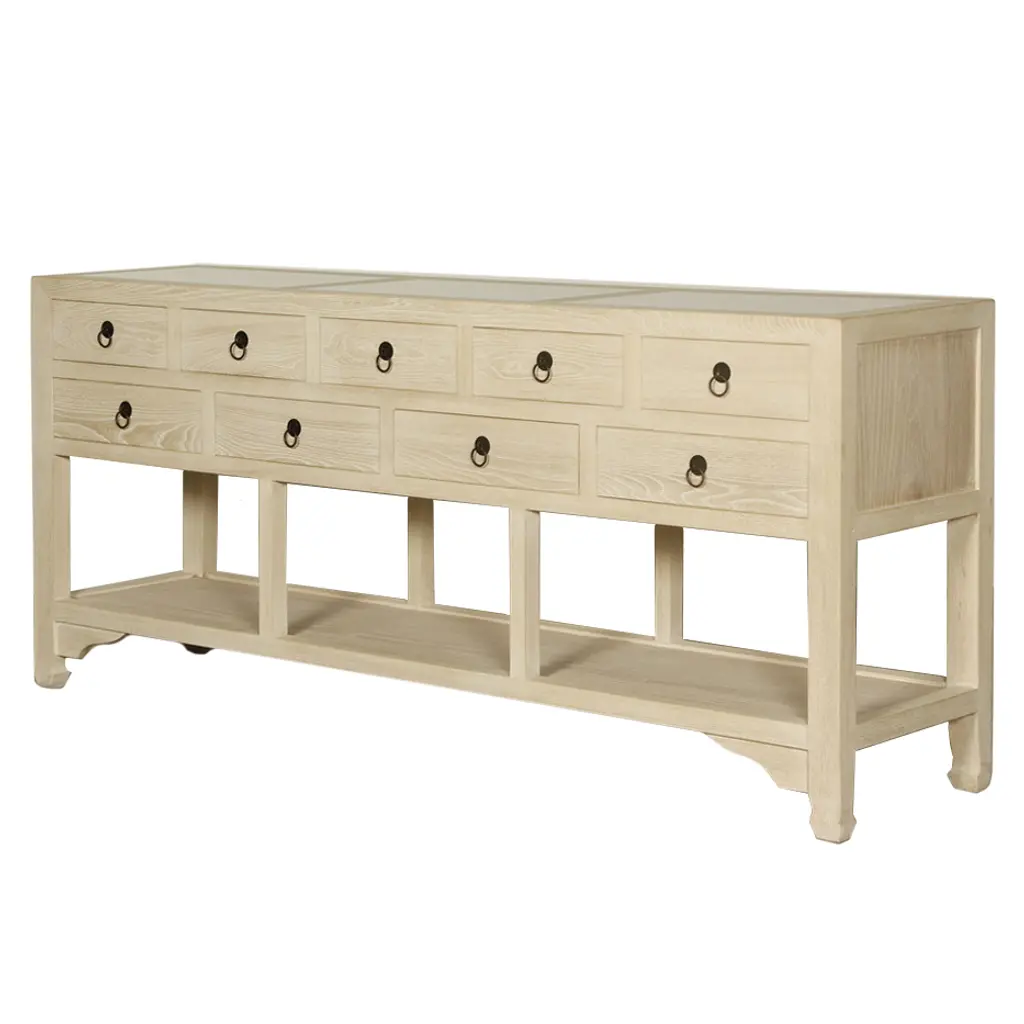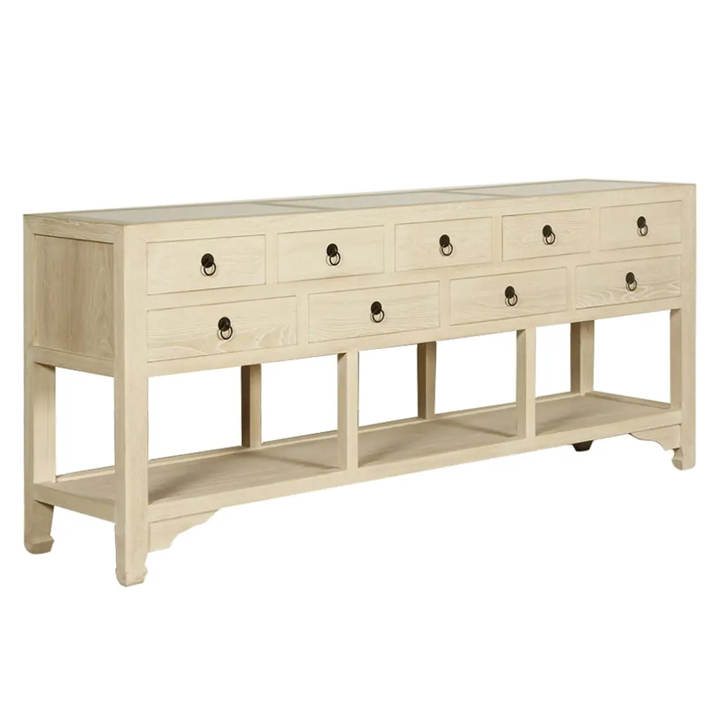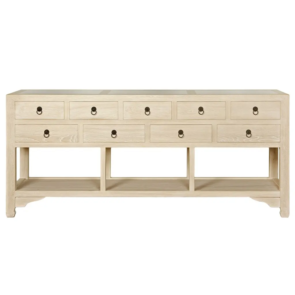 Carmella 9-drawer Marble Top Console Table, Whitewash