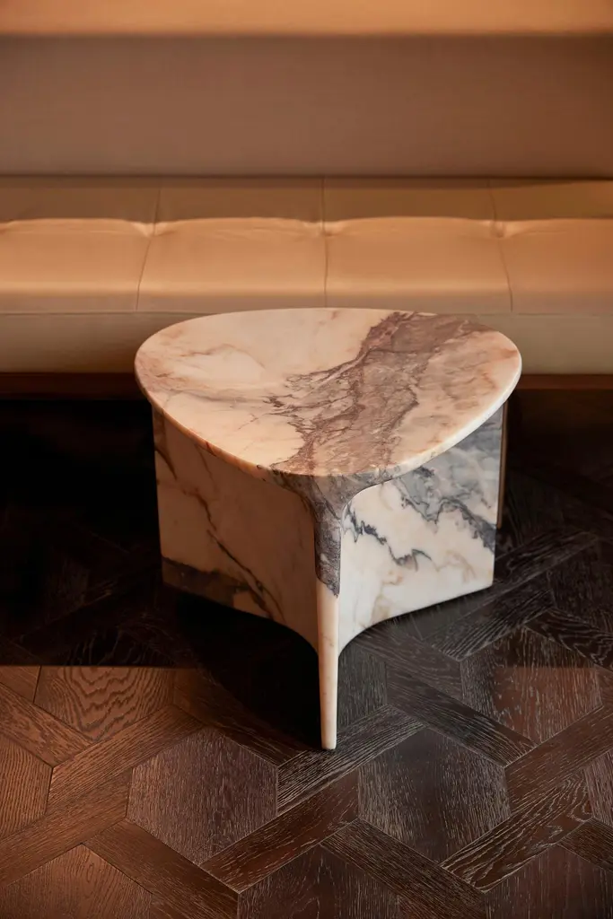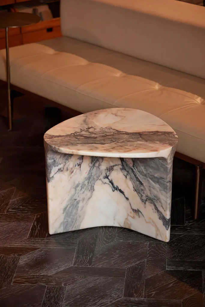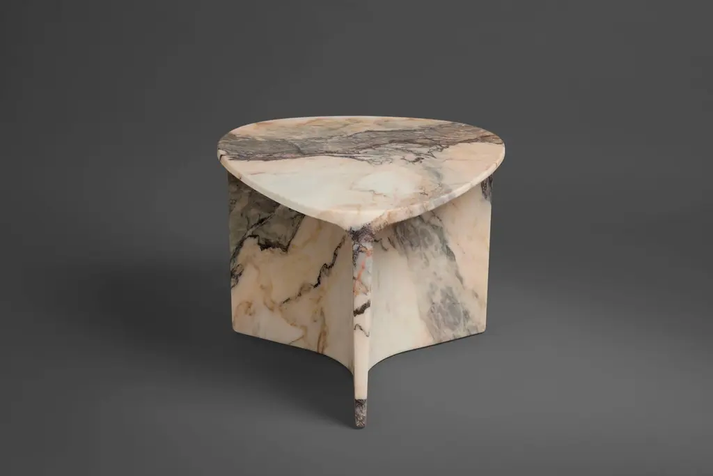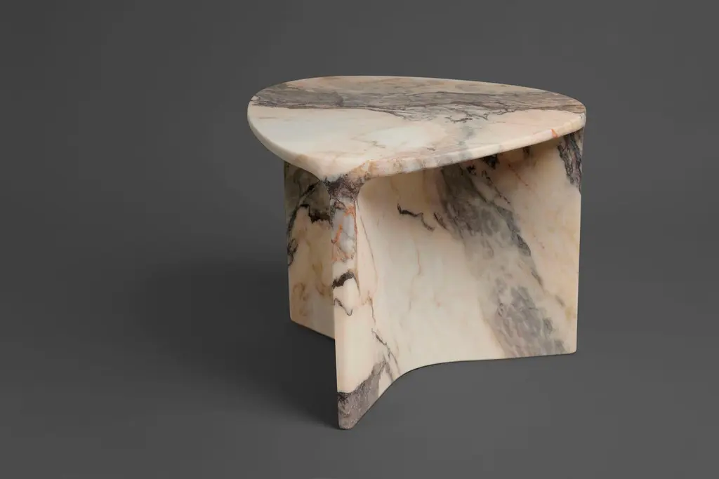 Carv occasional table is Cut from a single block of Calacatta Viola marble.Essential and organic design, naturally creating a flat tabletop flowingto a Y - shaped foot, revealing the stone’s veinsfrom the exterior surface through to it’s core,showcasing marble as a three dimensional piece rather than just a finishing surface.Design by Daniel Fintzi FORMAR - Original designs in solid stone.Marble comes in many shapes and sizes.For most customers the largest blocks are the most sought after.Smaller pieces are usually broken down into low value products that don’t reflect thenatural beauty that has taken millions of years to form.We work with quarries around the world, giving these off-cuts a new purpose.Formar’s process does not require any further excavation, working towards a healthy environment of sustainable consumption.Available now.Disclaimer: Marble is a natural material, variations in color and veining are expected, these make each table a unique, timeless piece.