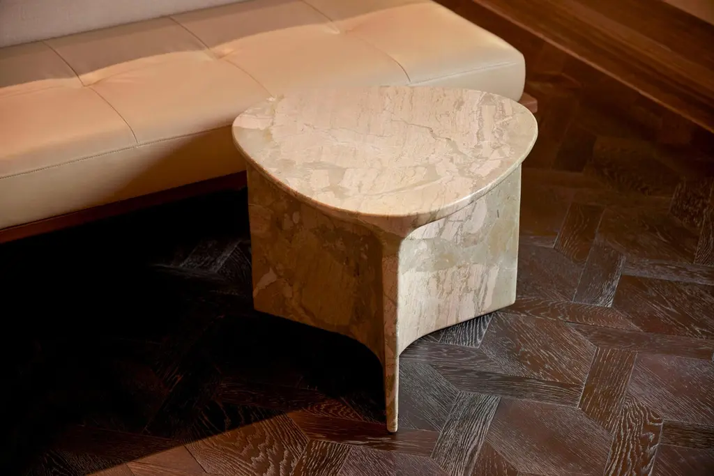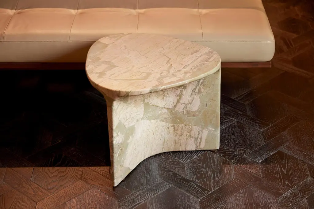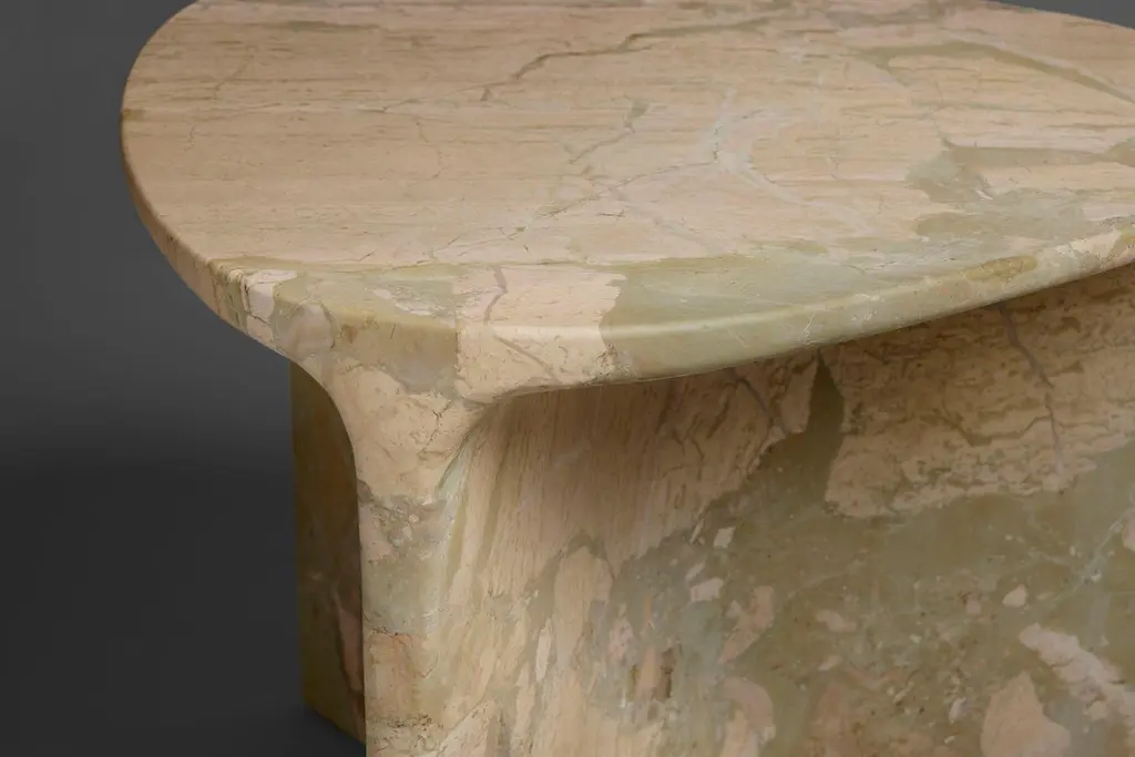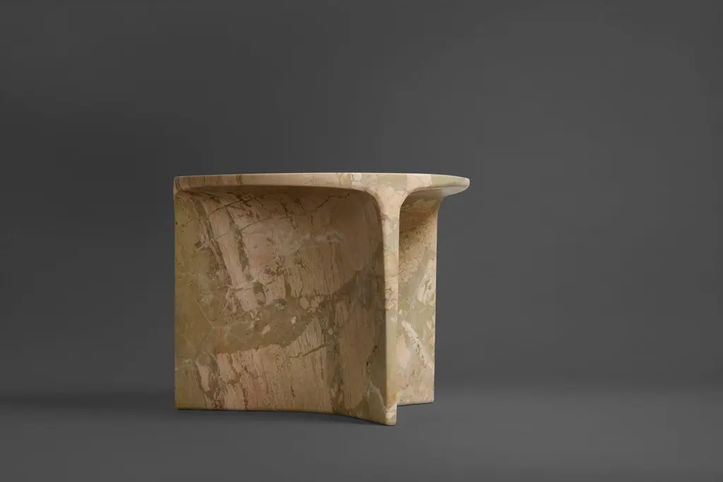 Carv occasional table is Cut from a single block of Italian Ceppo Monet marble.Essential and organic design, naturally creating a flat tabletop flowingto a Y - shaped foot, revealing the stone’s veinsfrom the exterior surface through to it’s core,showcasing marble as a three dimensional piece rather than just a finishing surface.Design by Daniel Fintzi FORMAR - Original designs in solid stone.Marble comes in many shapes and sizes.For most customers the largest blocks are the most sought after.Smaller pieces are usually broken down into low value products that don’t reflect thenatural beauty that has taken millions of years to form.We work with quarries around the world, giving these off-cuts a new purpose.Formar’s process does not require any further excavation, working towards a healthy environment of sustainable consumption.Available now.Disclaimer: Marble is a natural material, variations in color and veining are expected, these make each table a unique, timeless piece.