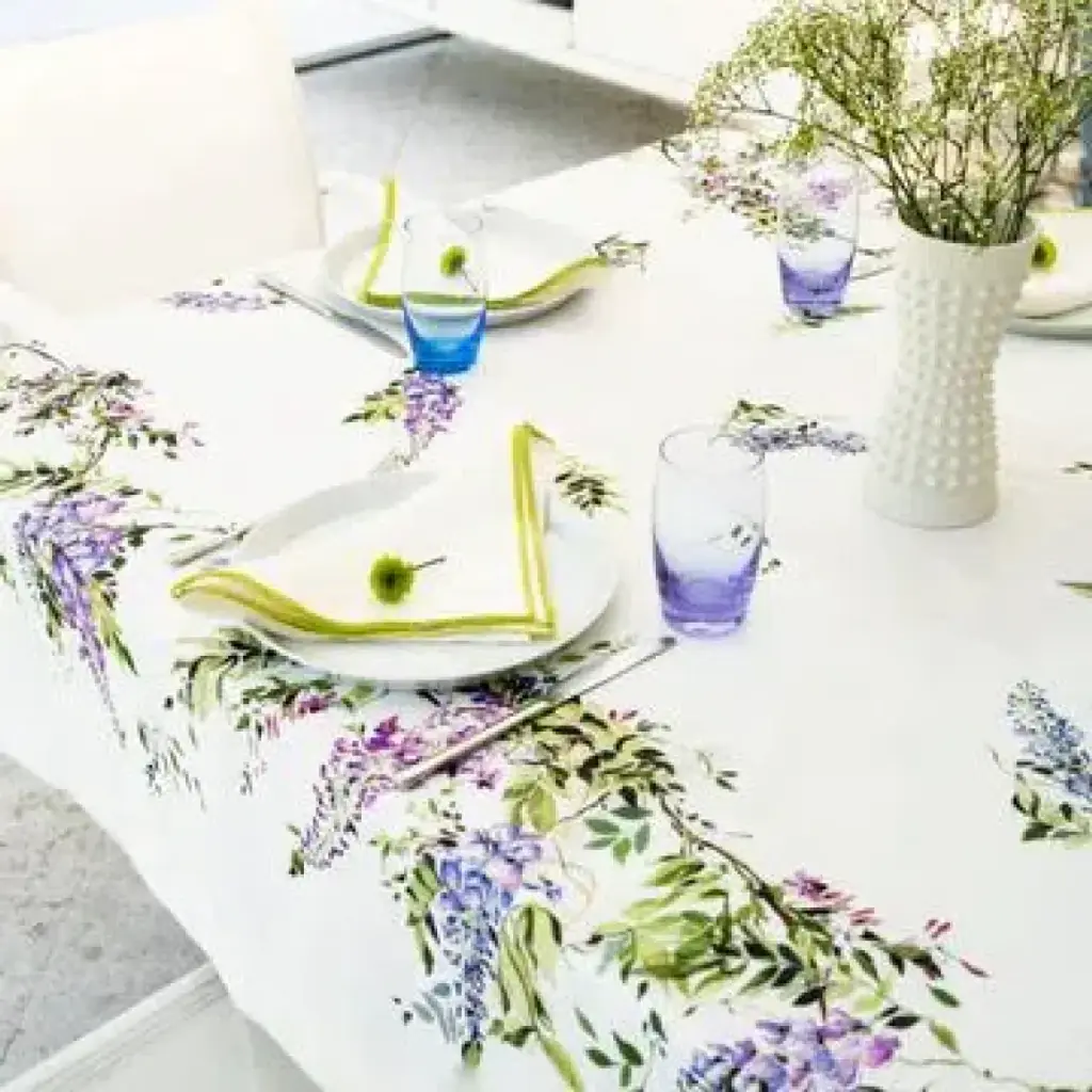 Charming and elegant, our Cassis table linen is the perfect base for any gathering. With its delicate purple and green floral details, it adds the perfect pop of color and style to any table. Easy to launder, it makes entertaining and clean up a breeze.