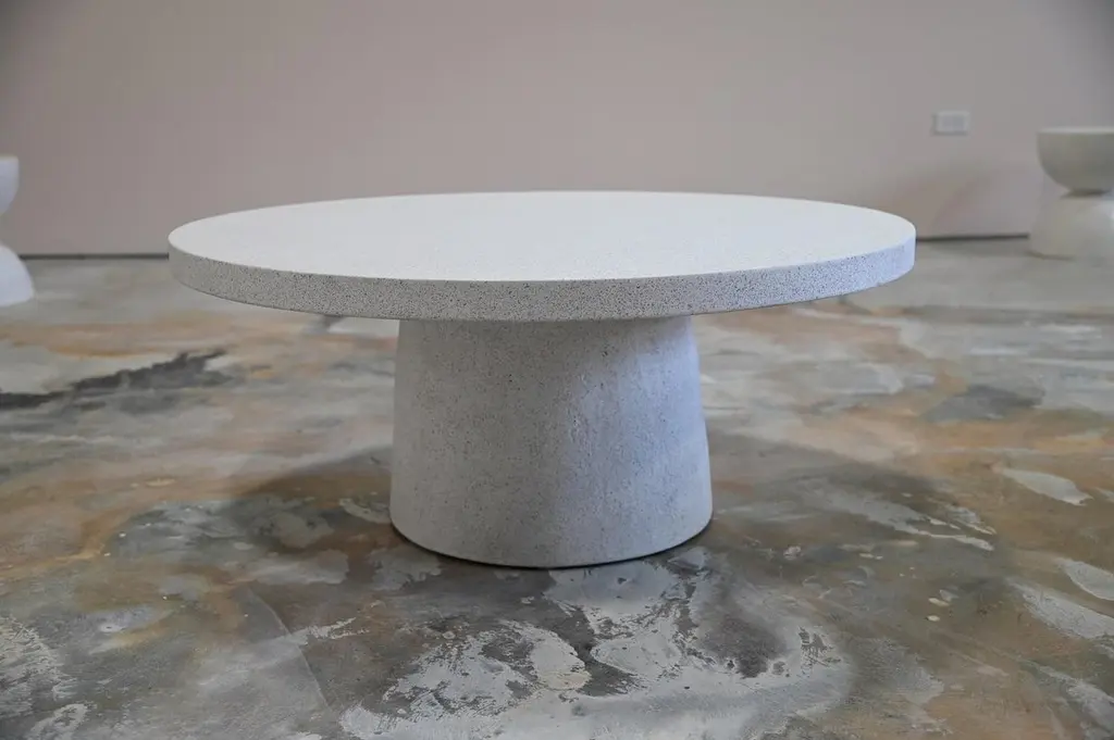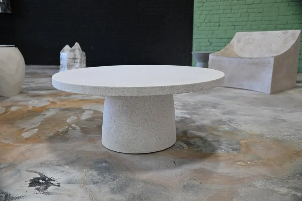 A stoic voice emanates from its rough and raw base through its smooth, honed tabletop. A striking piece for outdoor conversation, or a vessel for natural warmth in your home.Dimensions: Diameter 41 in. (104 cm), height 17 in. (43 cm). Weight 50 lbs. (23 kg).Materials: resin, stone aggregate, fiberglass.Durable and designed to be used outdoors in all seasons and in residential or hospitality environments.Designed by: Zachary BitnerMade to order in Chicago, Illinois. About Zachary A. Design:Founded by Zac Bitner, Zachary A. Design is a furniture brand based in Chicago. The team combines an approachable art sensibility with a deep expertise of the materials. With a focus on the unexpected, they push the boundaries of material finish and refine age-old production techniques to be used in modern, artful furniture designs. Each piece is hand-cast in Chicago. The furniture is designed to be used indoors and outdoors in all seasons.