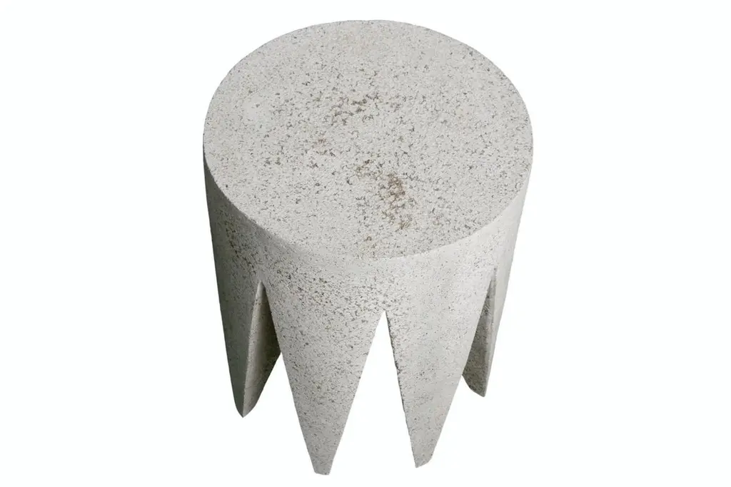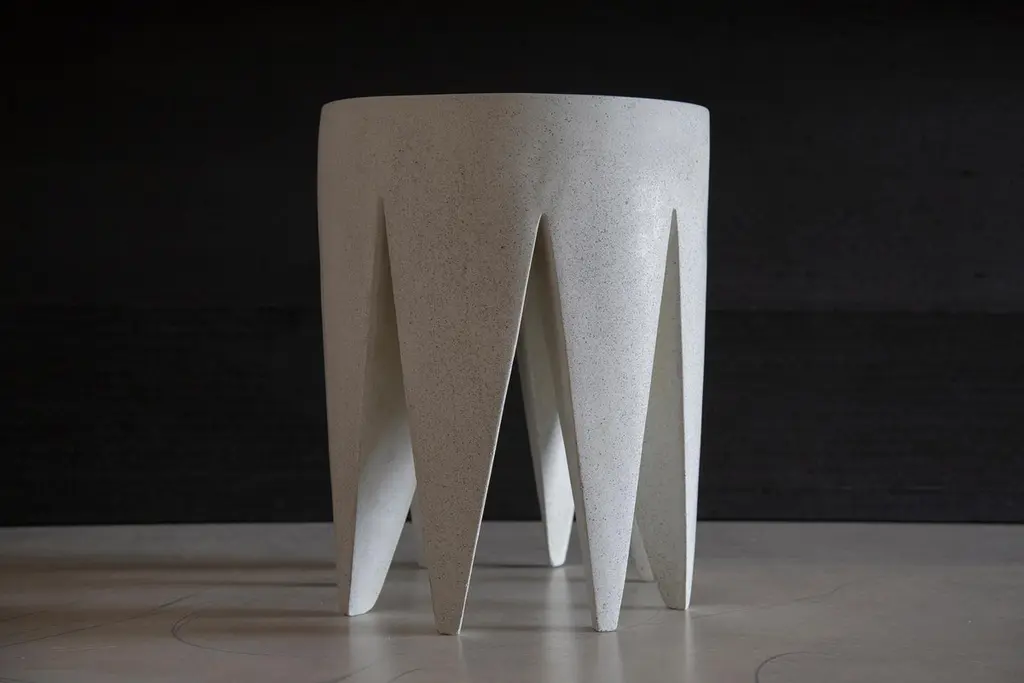 A sense of muted regality, and a grounding force. Ornamentation is integrated into its structure, guiding the eye through its stone-laden points and imbuing it with a sense of stability.Dimensions: Diameter 14 in. (36 cm), height 18 in. (46 cm). Weight 35 lbs. (16 kg).Materials: Resin, stone aggregate, fiberglass.Durable and designed to be used outdoors in all four seasons and in residential or hospitality environments.Designed by: Zachary BitnerMade to order in Chicago, Illinois.About Zachary A. Design:Founded by Zac Bitner, Zachary A. Design is a furniture brand based in Chicago. The team combines an approachable art sensibility with a deep expertise of the materials. With a focus on the unexpected, they push the boundaries of material finish and refine age-old production techniques to be used in modern, artful furniture designs. Each piece is hand-cast in Chicago. The furniture is designed to be used indoors and outdoors in all seasons.