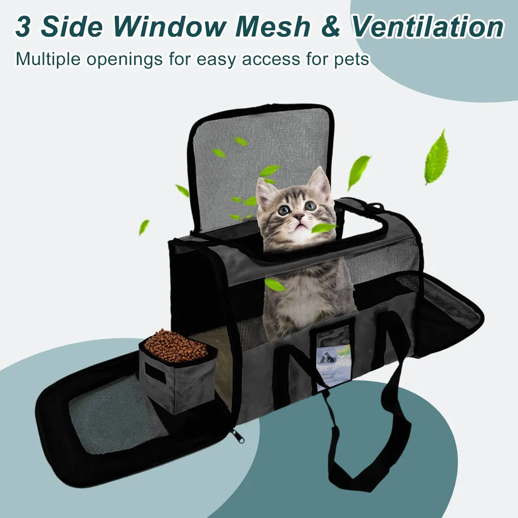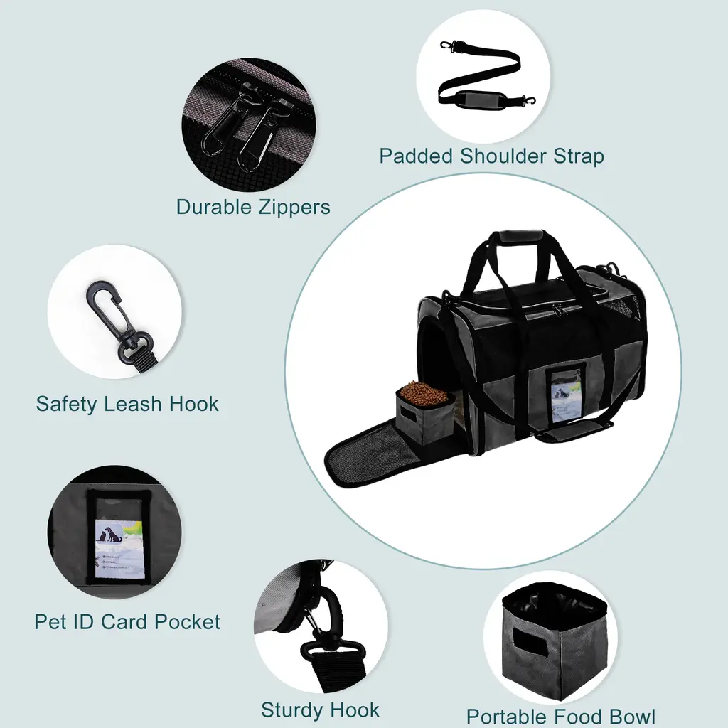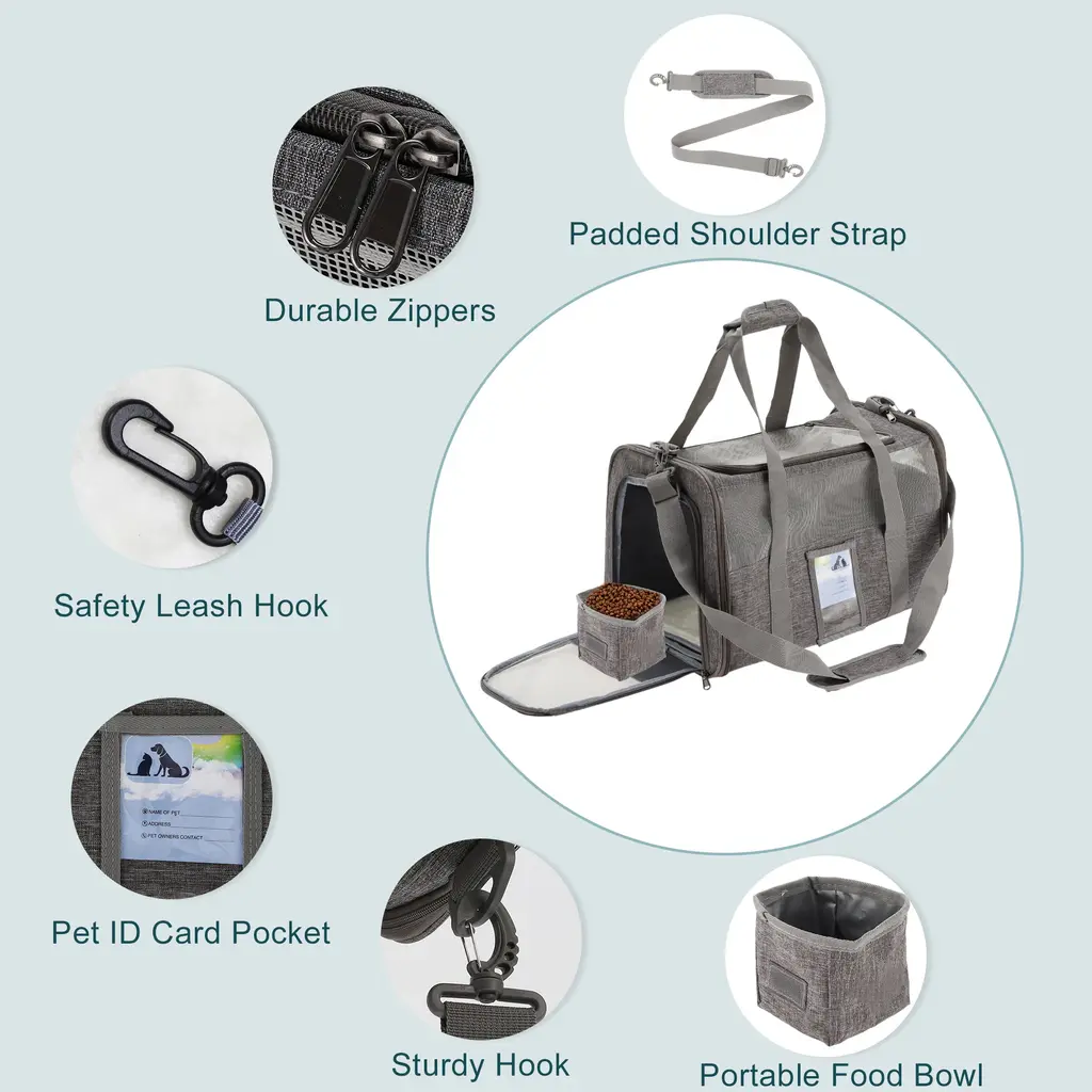 Cat Carrier With Portable Food Bowl Tsa Approved Pet Carrier In Cabin - Gray