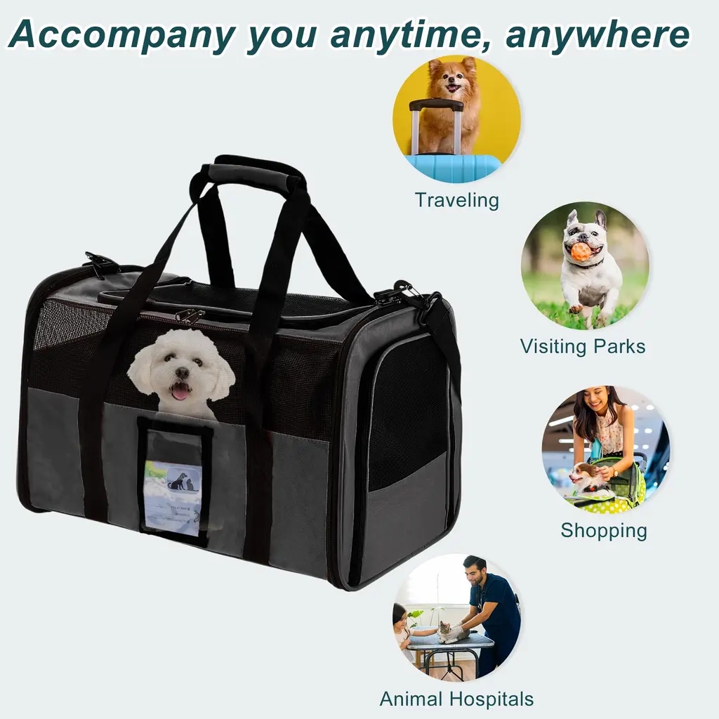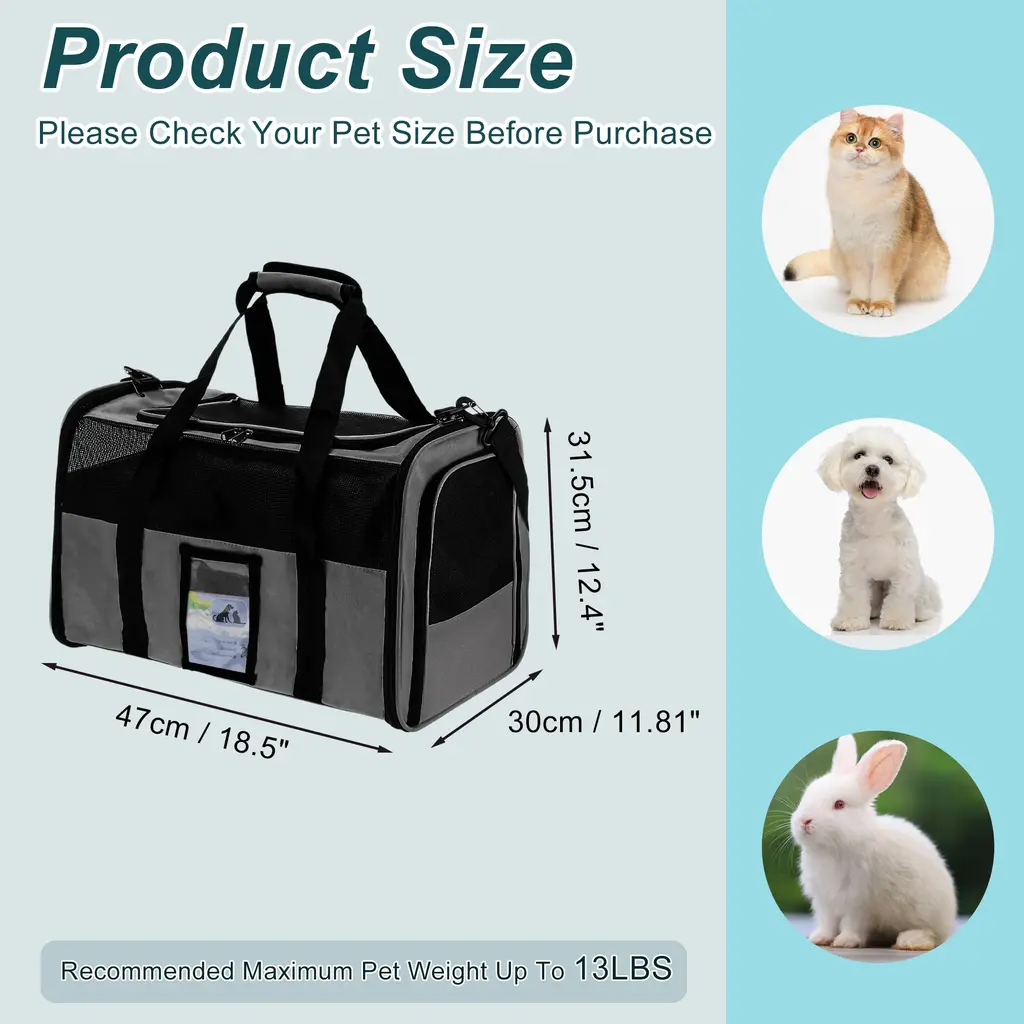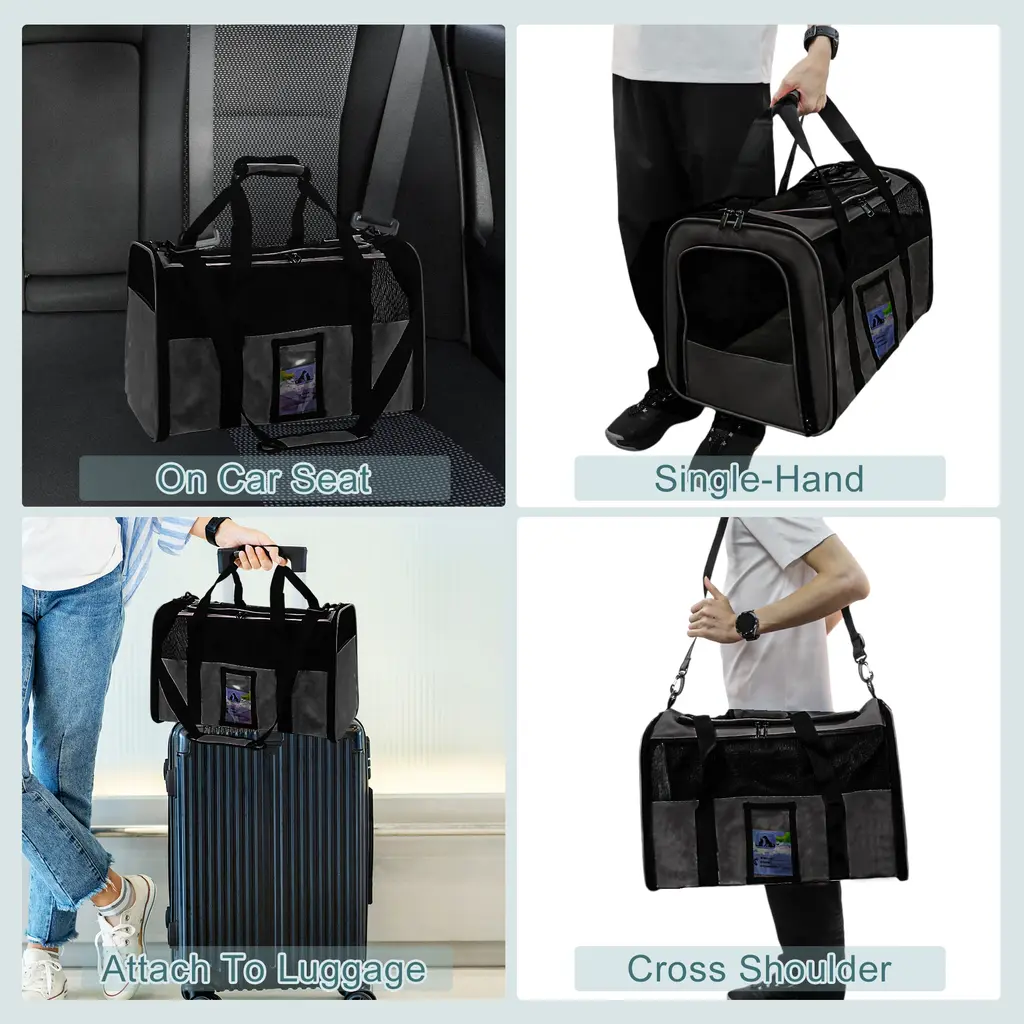 Cat Carrier With Portable Food Bowl Tsa Approved Pet Carrier In Cabin - Gray