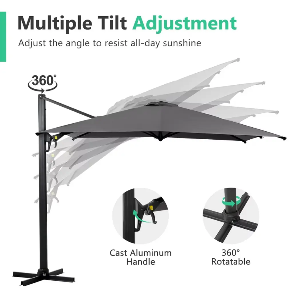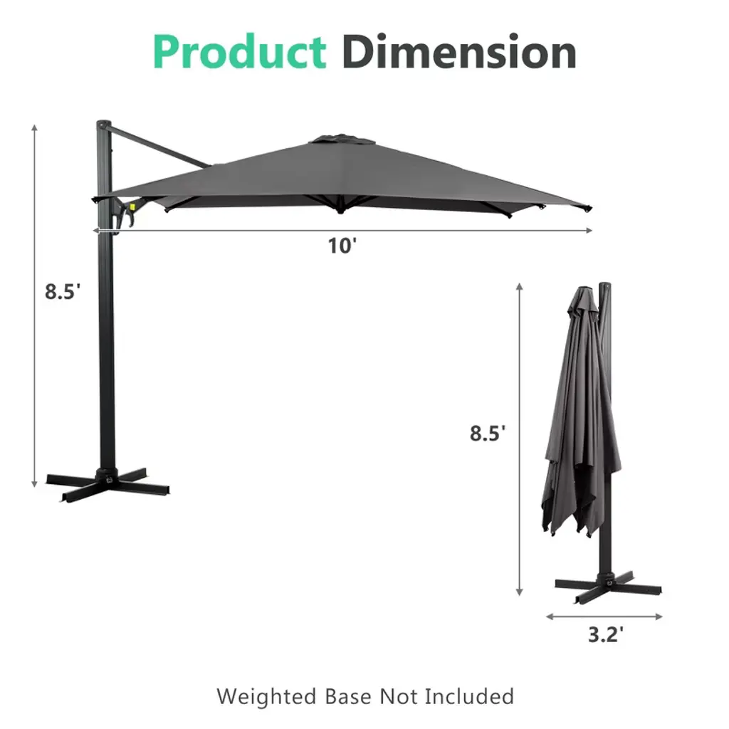 Cavinas 10 Ft Heavy Duty Cantilever Umbrella With Base, Large Square Umbrella For Outdoor Table For Garden, Gray
