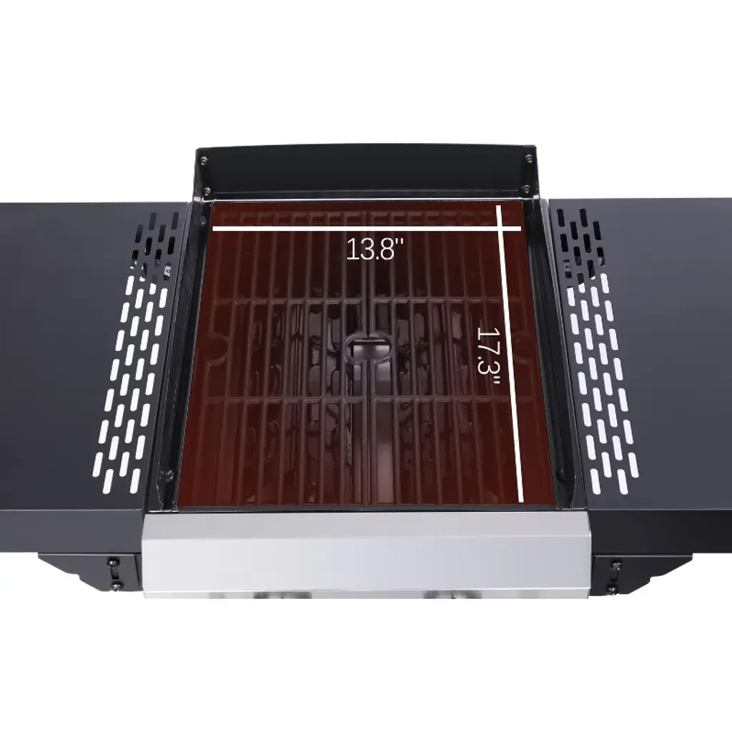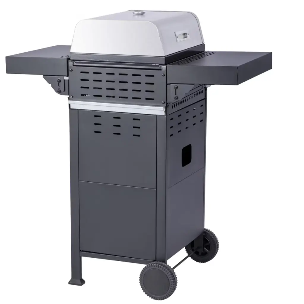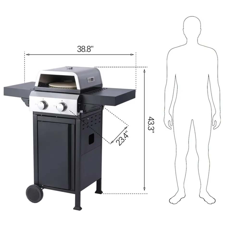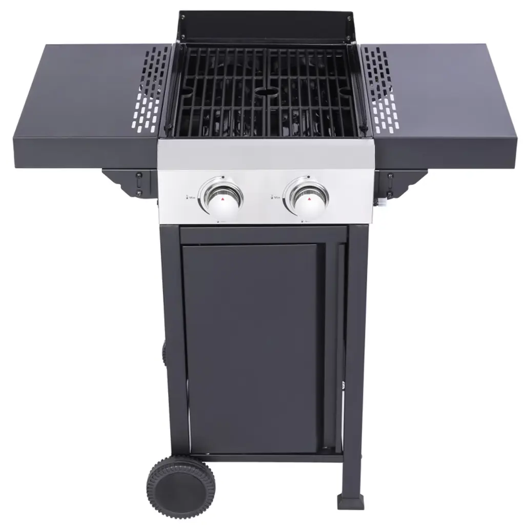 Cavinas 2-burner Propane Gas Grill Stainless Steel Propane Grill Foldable Side Table Smoker Grill For Outdoor Grilling, Black+silver