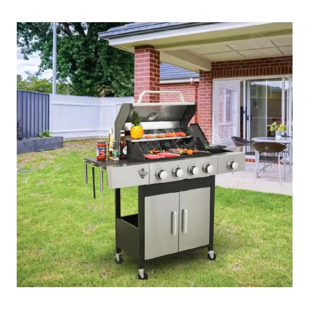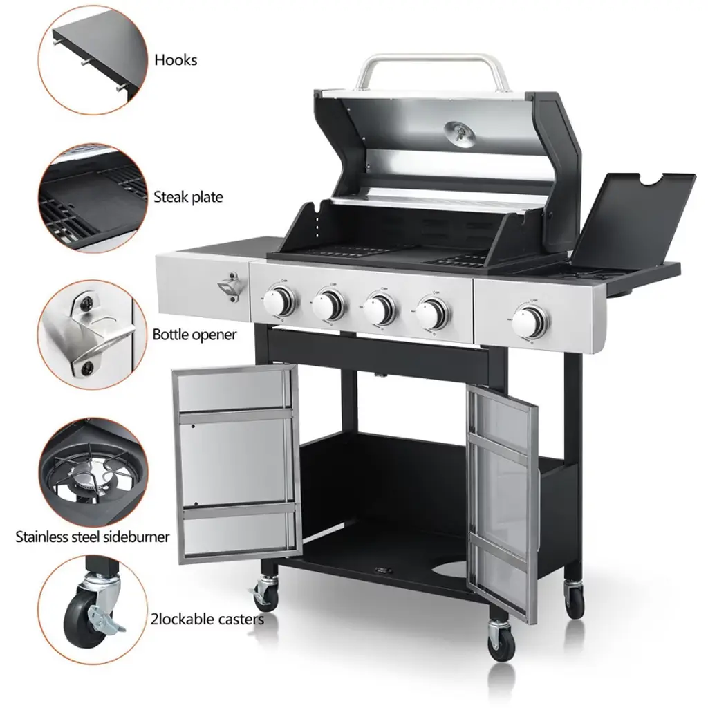 Cavinas 5-burner Propane Gas Bbq Grill,46790btu Output Outdoor Grill With Side Burner&foldable Side Table,enameled Cast Iron Cooking Grids,black