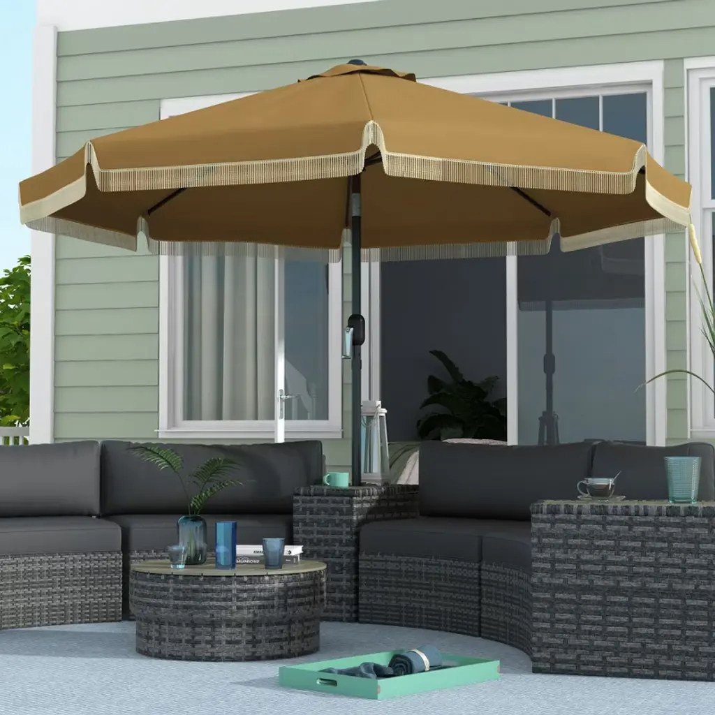 Cavinas 9 Ft Portable Patio Sun Shade Crank Lift Beach Umbrella Ruffle Chair Umbrella (Base Not Included), Tan