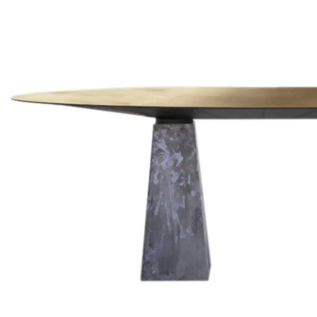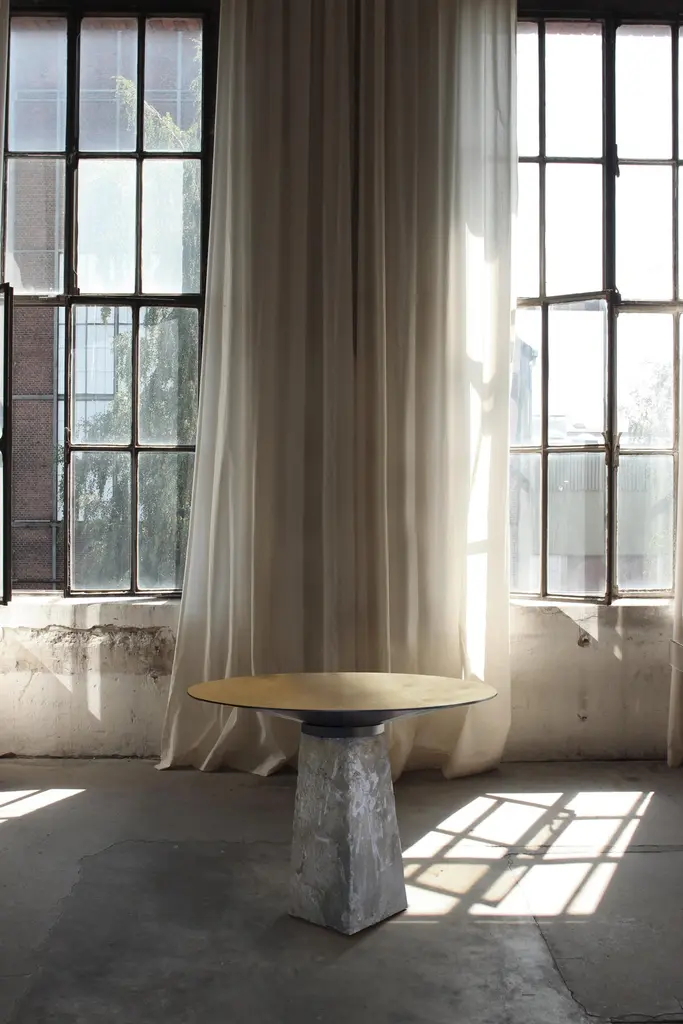 CBS2 Limited Edition Sculptural Brass Table and Concrete Base by Jan GarncarekLimited edition of 2 piecesSigned Dimensions: W 200 x D 100 x H 73 cmMaterials: Brass, steel and concreteWeight: 320 kgThe table is made out from unique elements. This piece has the concrete base - a vintage pedestal which is around 100 years old. Brass tabletop is supported on a steel construction, with time gets beautiful patina, but can be polished as well up to the customers needs. This piece links past and the future in a classical and unusual way. Limited edition of 2 pieces.The concrete table legs are architectural elements from the designer's family home, which were dismantled during the renovation of the historic building. The designer approaches the original pre-war fabric of the places he grew up in with great sentiment. Often giving it a new functionand meaning. In this way, the old world does not pass away, but in fact acquires greater significance.Jan Garncarek is an important contemporary designer, graduated from the Academy of Fine Arts in Warsaw. He gained extra qualifications at Politecnico di Milano. He has acquired professional experience in the design society. He took part in projects such as: design of visual information for the Museum of the history of Polish Jews, interior design project of the Polish cultural Institute in Tel Aviv, space arrangement of the Presidential Palace of Poland, interior design project of the Polish Embassy in Berlin and Skopje, Modernization of the Malachowski's Square in Warsaw. His process of designing is the state of researching, discovering and being curious of the world, making insightful observations and drawing sensible conclusions.