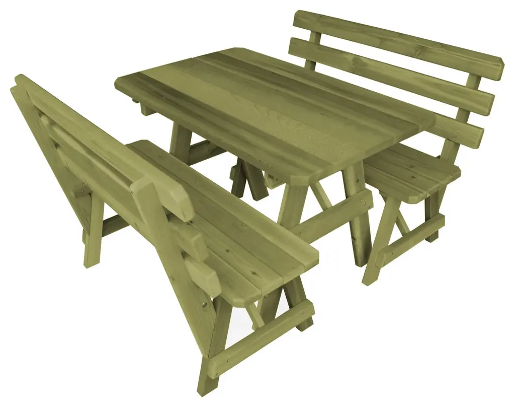 Cedar Picnic Table With 2 Backed Benches, Linden Leaf Stain, 4 Foot