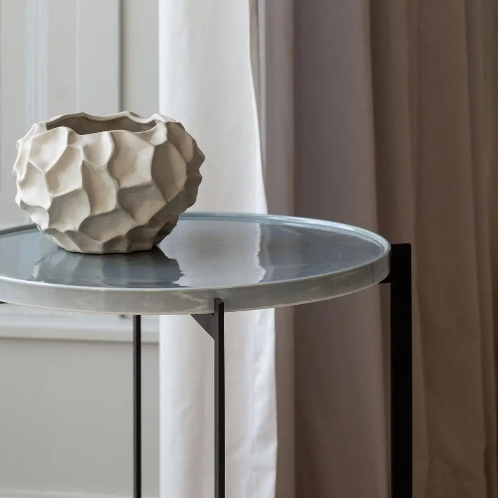 Celadon green Porcelain deck table by OxDenmarqDimensions: D 57 x W 57 x H 67 cmMaterials: Steel, PorcelainAlso available: Different tray conbinations availableOX DENMARQ is a Danish design brand aspiring to make beautiful handmade furniture, accessories and lighting in natural high-quality materials in fair prices. " When we set out back in 2003, we were primarily working with vegetable-tanned saddle leather thus the name OX was a tribute to our unique leather and the animal providing it.The other half of our name, DENMARQ, is chosen to emphasize that we are a Danish design brand based on the Danish design tradition and that most of our furniture is produced in Denmark. However, DENMARQ not only refers to our home country, but also to the co-founder and designer - DENnis MARQuart.Before finishing his design studies at the Copenhagen Design University, Dennis Marquart did a Blacksmith education. This background is extremely useful when developing and designing products."OX DENMARQ handmade products will only get more beautiful as time passes and natural patina sets in.Many OX products are shaped around marble or vegetable-tanned saddle leather. Stone and leather are materials that will, and should, get marks over time. But they will also age with a very special beauty. When you learn to appreciate the beauty of maturity and of time passing, you have learned to appreciate patina the way it should be appreciated.